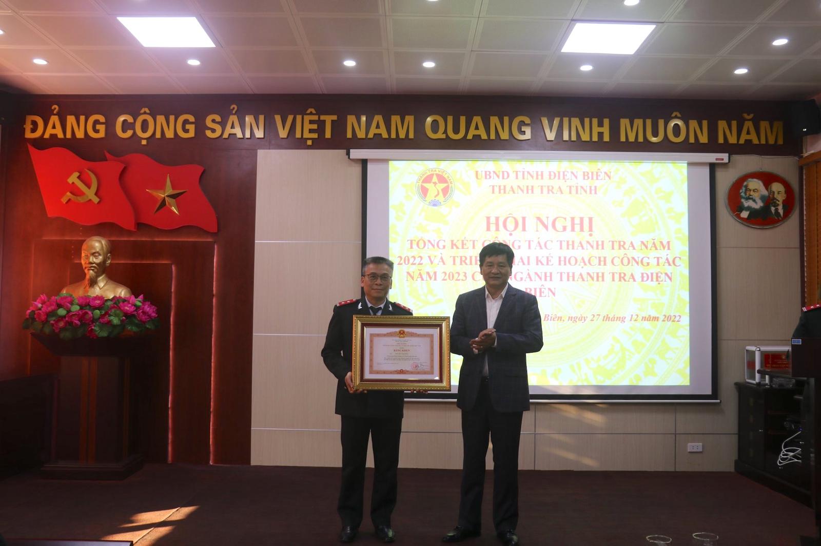 Chủ tịch UBND tỉnh trao bằng khen của Thủ tướng Chính phủ. Ảnh: Thanh tra Điện Biên