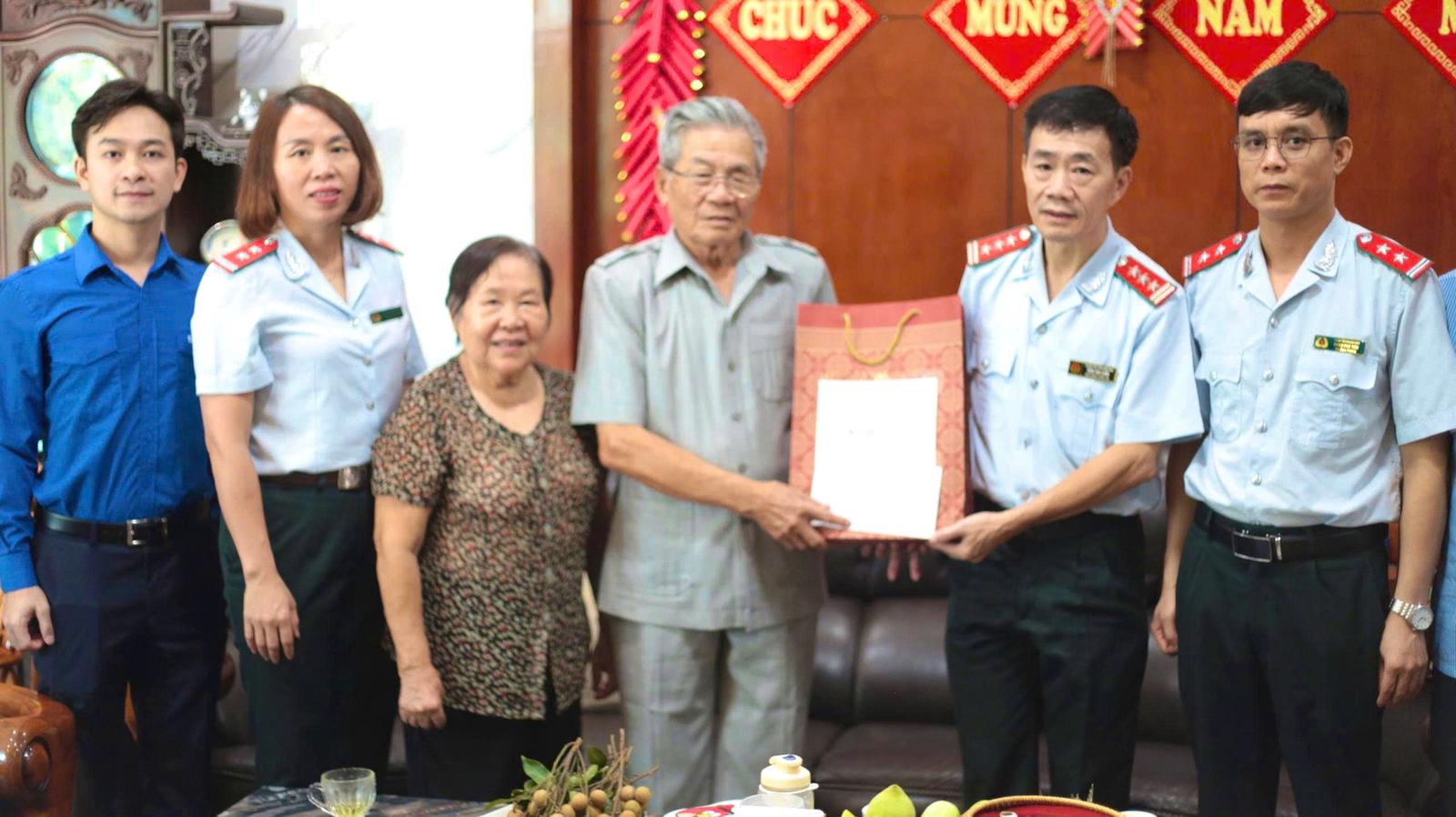 Đoàn thăm hỏi, tặng quà gia đình thương binh là bố mẹ của công chức Thanh tra tỉnh. Ảnh: ĐB
