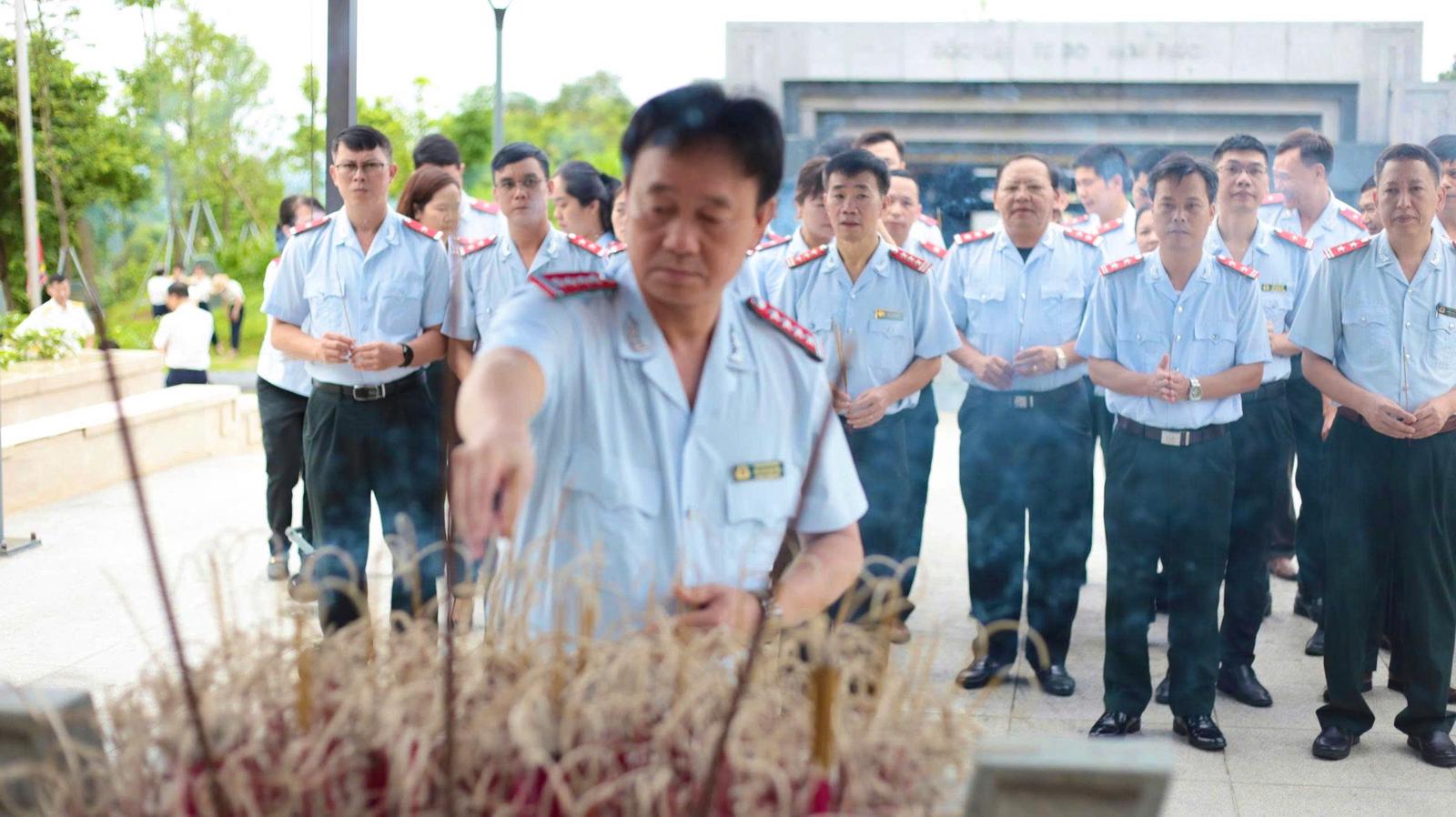 Chánh Thanh tra Vùi Văn Nguyện cùng cán bộ, công chức Thanh tra tỉnh Điện Biên thắp hương tưởng nhớ các Anh hùng liệt sĩ tại Đền thờ liệt sĩ Chiến trường Điện Biên Phủ. Ảnh: ĐB