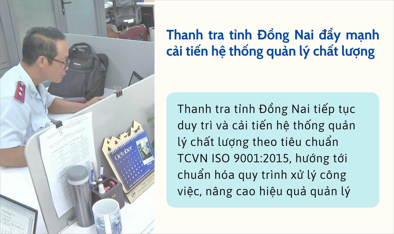 (Thanh tra) - Năm 2026, Thanh tra tỉnh Đồng Nai tiếp tục duy trì và cải tiến hệ thống quản lý chất lượng theo tiêu chuẩn TCVN ISO 9001:2015, hướng tới chuẩn hóa quy trình xử lý công việc, nâng cao hiệu quả quản lý, đồng thời tăng cường tính minh bạch, trách nhiệm trong thực thi công vụ và phục vụ tổ chức, công dân.