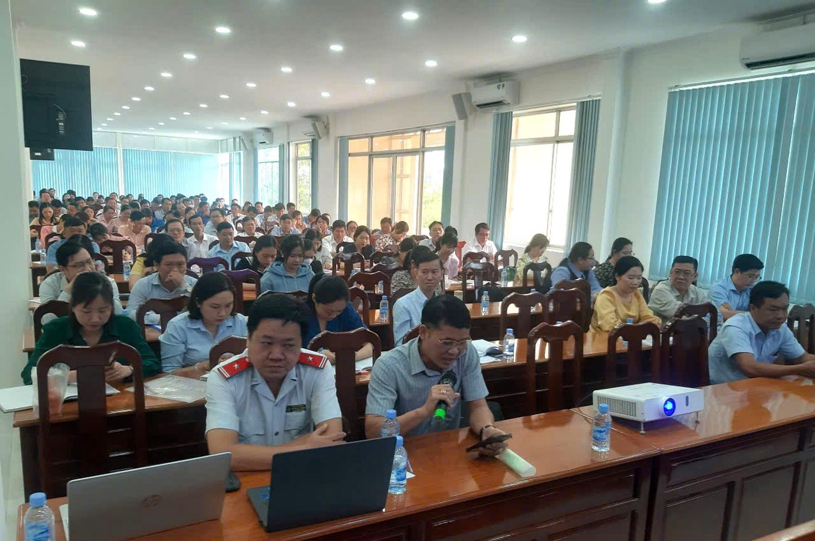 Học viên của lớp tập huấn trao đổi trực tiếp các tình huống thực tiễn với báo cáo viên của Thanh tra tỉnh Đồng Tháp. Ảnh: DP