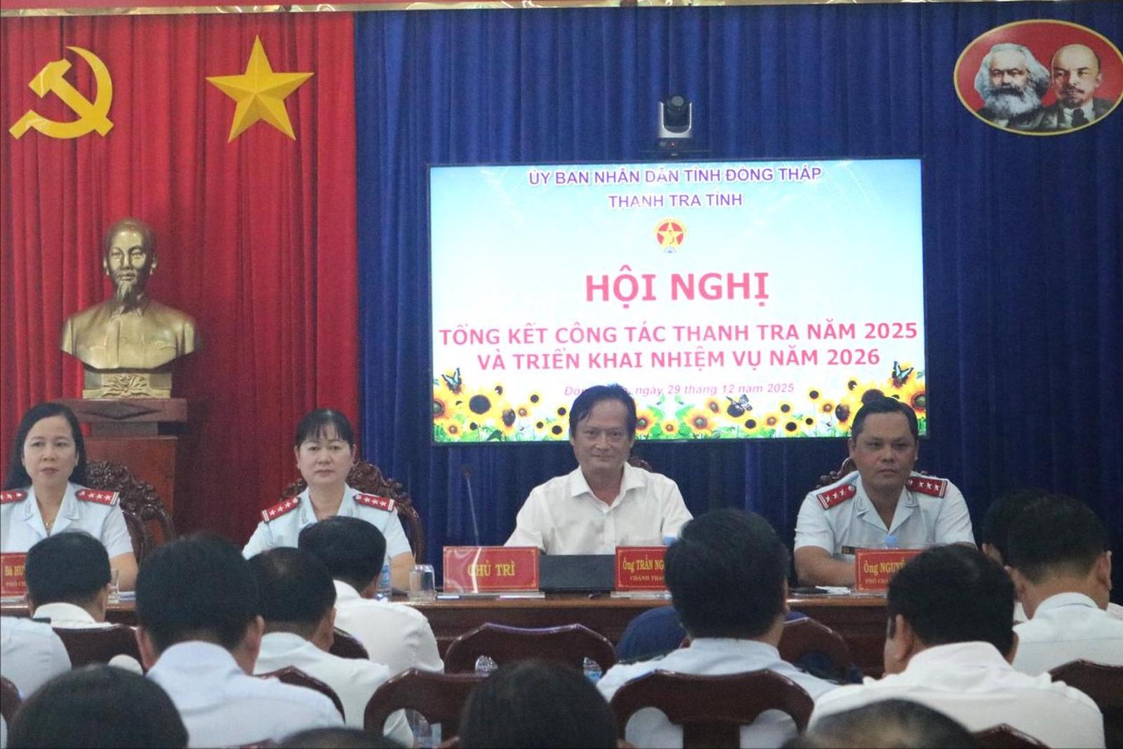Phát biểu chỉ đạo tại Hội nghị tổng kết công tác năm 2025, Chánh Thanh tra tỉnh Trần Ngô Minh Tuấn nhấn mạnh, phát huy những kết quả đạt được năm 2025, Thanh tra tỉnh Đồng Tháp tiếp tục đoàn kết, triển khai thực hiện đồng bộ các chủ trương, chính sách, pháp luật và các văn bản chỉ đạo của Tỉnh ủy, UBND tỉnh Đồng Tháp về công tác thanh tra; tiếp công dân, giải quyết khiếu nại, tố cáo; phòng, chống tham nhũng tiêu cực và xây dựng ngành...