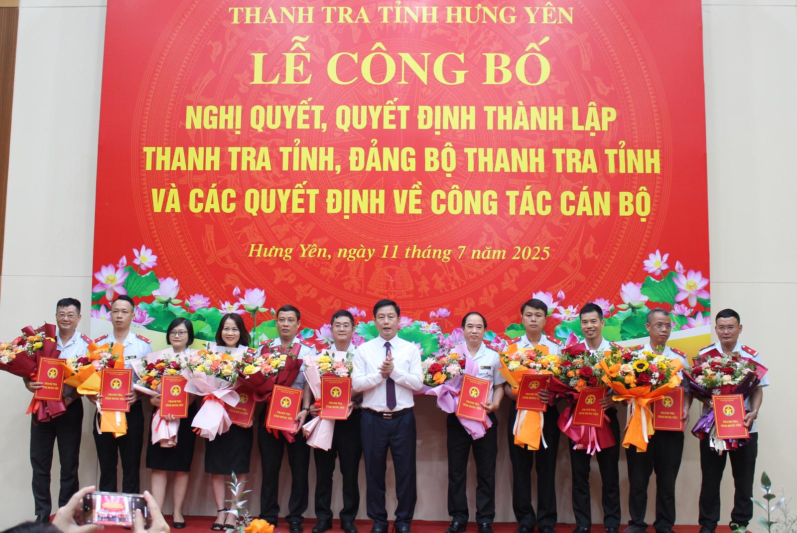Cùng với đó, Thanh tra tỉnh Hưng Yên cũng đã công bố và trao các quyết định bổ nhiệm Chánh Văn phòng Thanh tra tỉnh và Trưởng của 8 phòng nghiệp vụ.