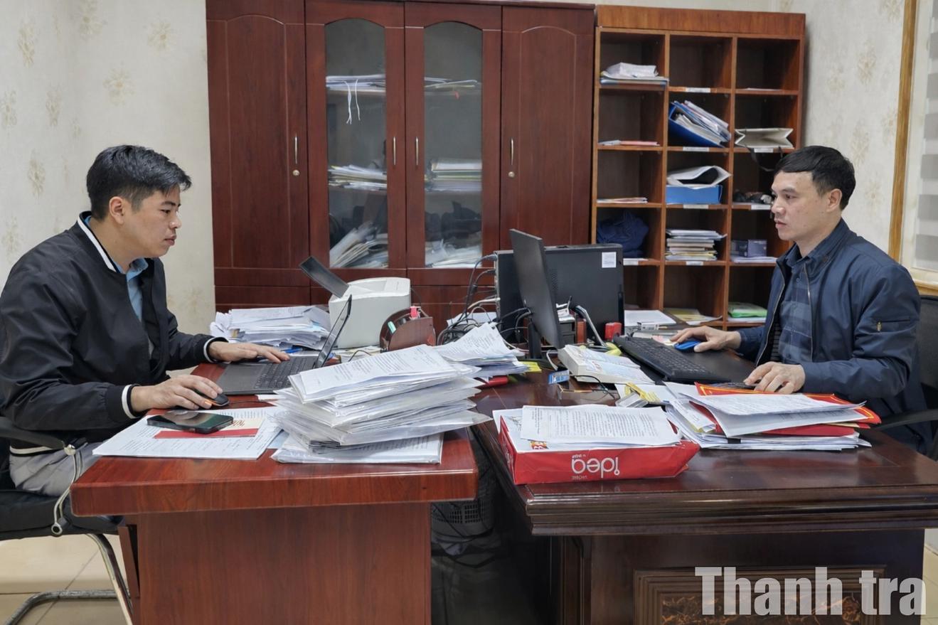 Chánh Văn phòng cùng công chức Thanh tra tỉnh Hưng Yên ứng dụng công nghệ thông tin trong xử lý hồ sơ, văn bản, nâng cao hiệu quả quản lý, điều hành. Ảnh: Bùi Bình