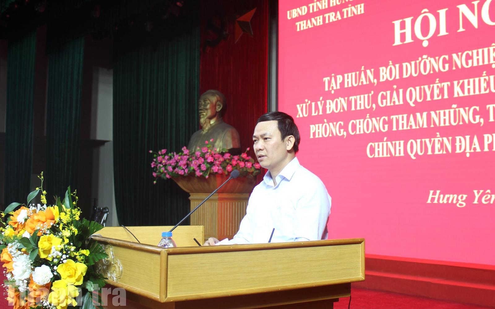 Phát biểu khai mạc hội nghị, Phó Chánh Thanh tra tỉnh Hưng Yên Đỗ Văn Tuấn nhấn mạnh, công tác tiếp công dân, xử lý đơn thư, giải quyết KN, TC; thanh tra, kiểm tra; PCTN, lãng phí, tiêu cực; kê khai và kiểm soát tài sản, thu nhập là những nhiệm vụ trọng tâm, có ý nghĩa đặc biệt quan trọng trong quản lý Nhà nước.