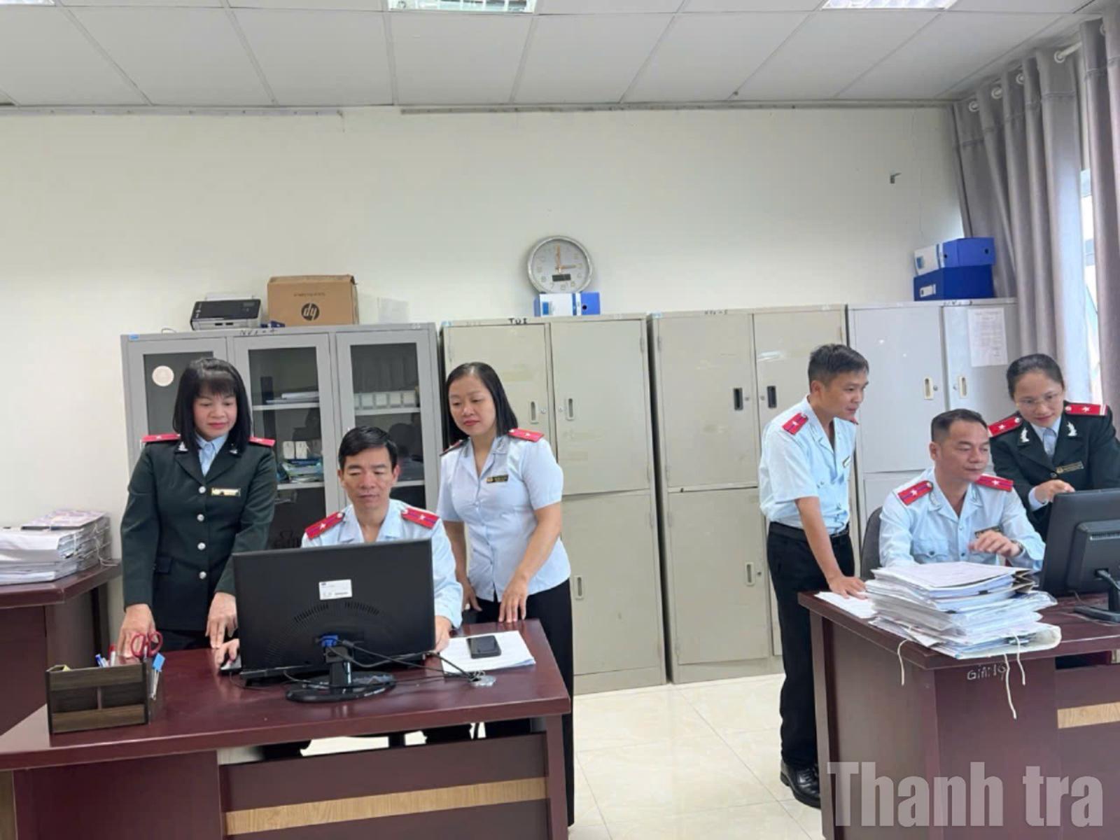 Cán bộ Phòng Giám sát, kiểm tra và xử lý sau thanh tra phối hợp giải quyết các nhiệm vụ chuyên môn. Ảnh: Lệ Quyên