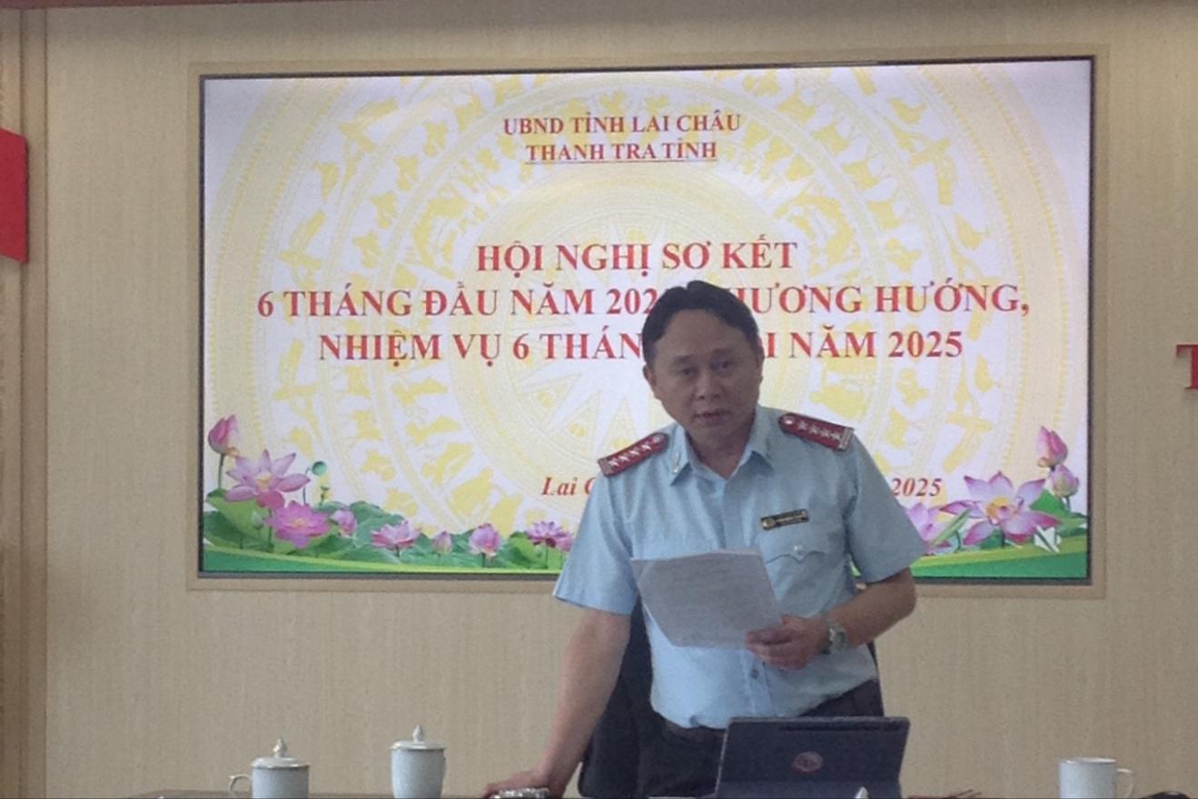 Ông Trần Quốc Khanh, Chánh Thanh tra tỉnh Lai Châu phát biểu tại Hội nghị sơ kết 6 tháng đầu năm 2025. Ảnh: VP