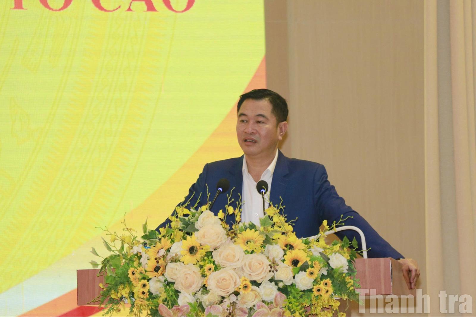 Ông Nguyễn Trung Triều phát biểu tại lớp tập huấn nghiệp vụ tiếp công dân, giải quyết đơn thư do Thanh tra tỉnh Lào Cai tổ chức. Ảnh: Bùi Bình