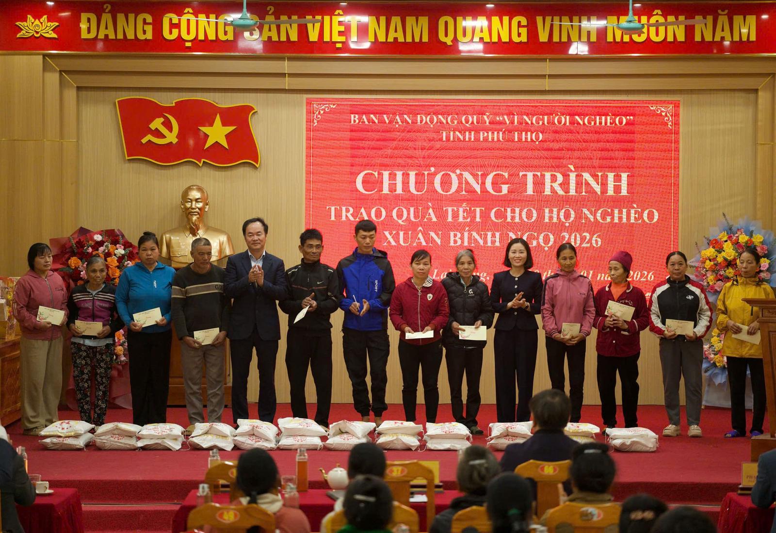Lãnh đạo Thanh tra tỉnh Phú Thọ tặng quà và chúc tết các hộ nghèo, hộ có hoàn cảnh khó khăn trên địa bàn xã Lai Đồng nhân dịp Tết Nguyên đán Xuân Bính Ngọ. Ảnh: CTV