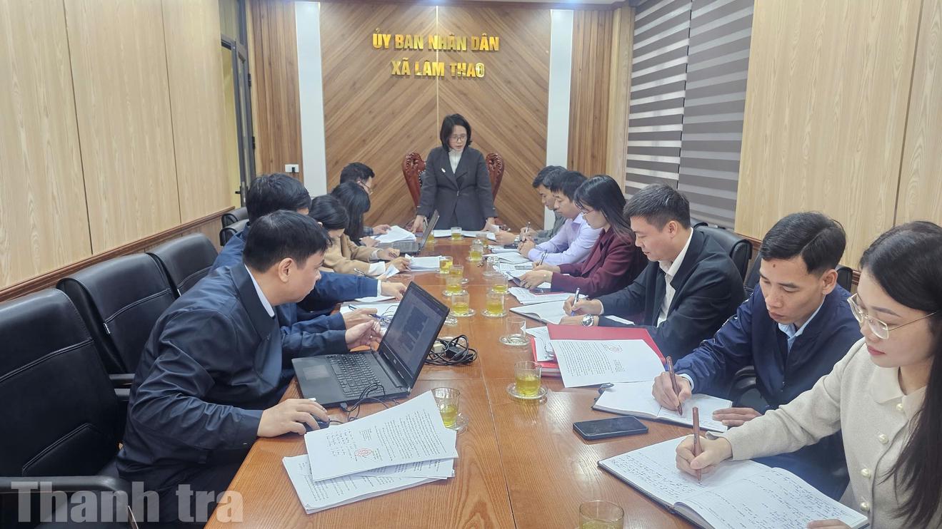 Phó Chánh Thanh tra tỉnh Phú Thọ Lại Thị Tuyết Lan chủ trì đoàn kiểm tra, hướng dẫn nghiệp vụ tiếp công dân, tiếp nhận, xử lý và giải quyết khiếu nại, tố cáo tại xã Lâm Thao. Ảnh: PV