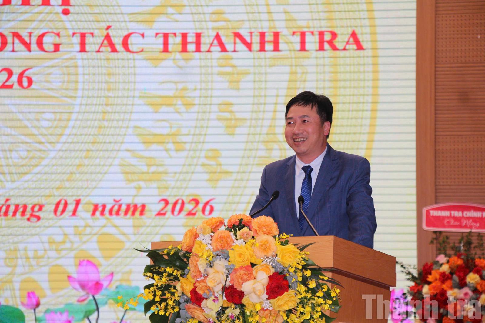 Phát biểu tại hội nghị, ông Phạm Hùng, Cục trưởng Cục I – Thanh tra Chính phủ chúc mừng những kết quả Thanh tra tỉnh Phú Thọ đạt được trong năm 2025. Cục trưởng Cục I cũng lưu ý một số công tác trong thời gian tới đối với Thanh tra tỉnh. Trong đó, đề nghị Thanh tra tỉnh tham mưu UBND tỉnh đẩy nhanh giải quyết các vụ việc tồn đọng, phức tạp để kết thức việc giải quyết trong quý I năm 2026.