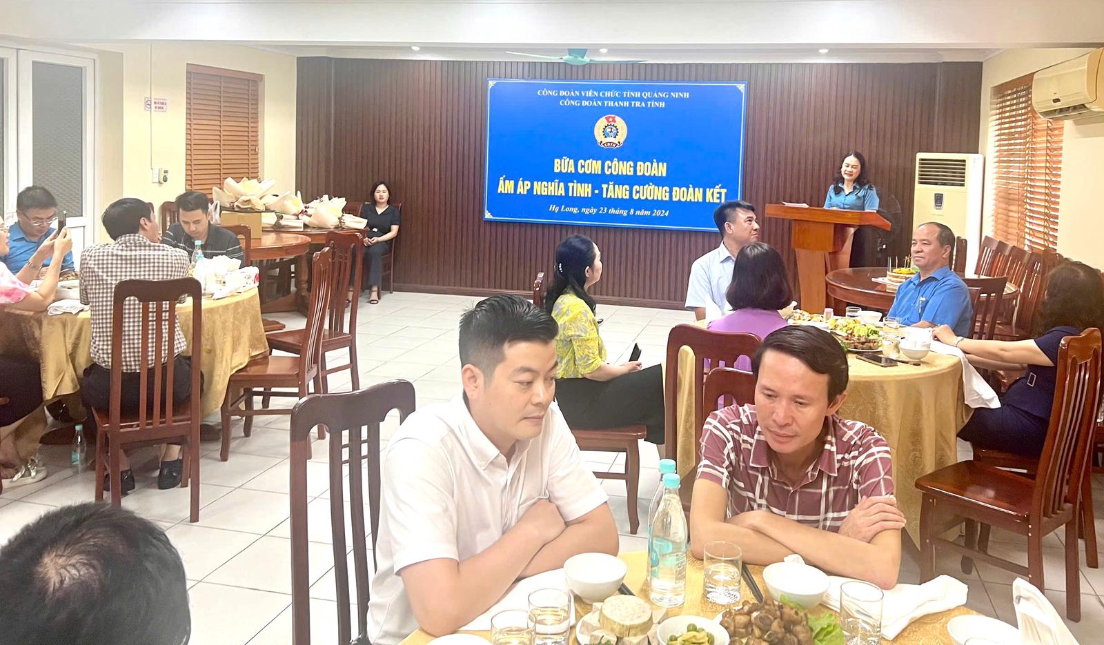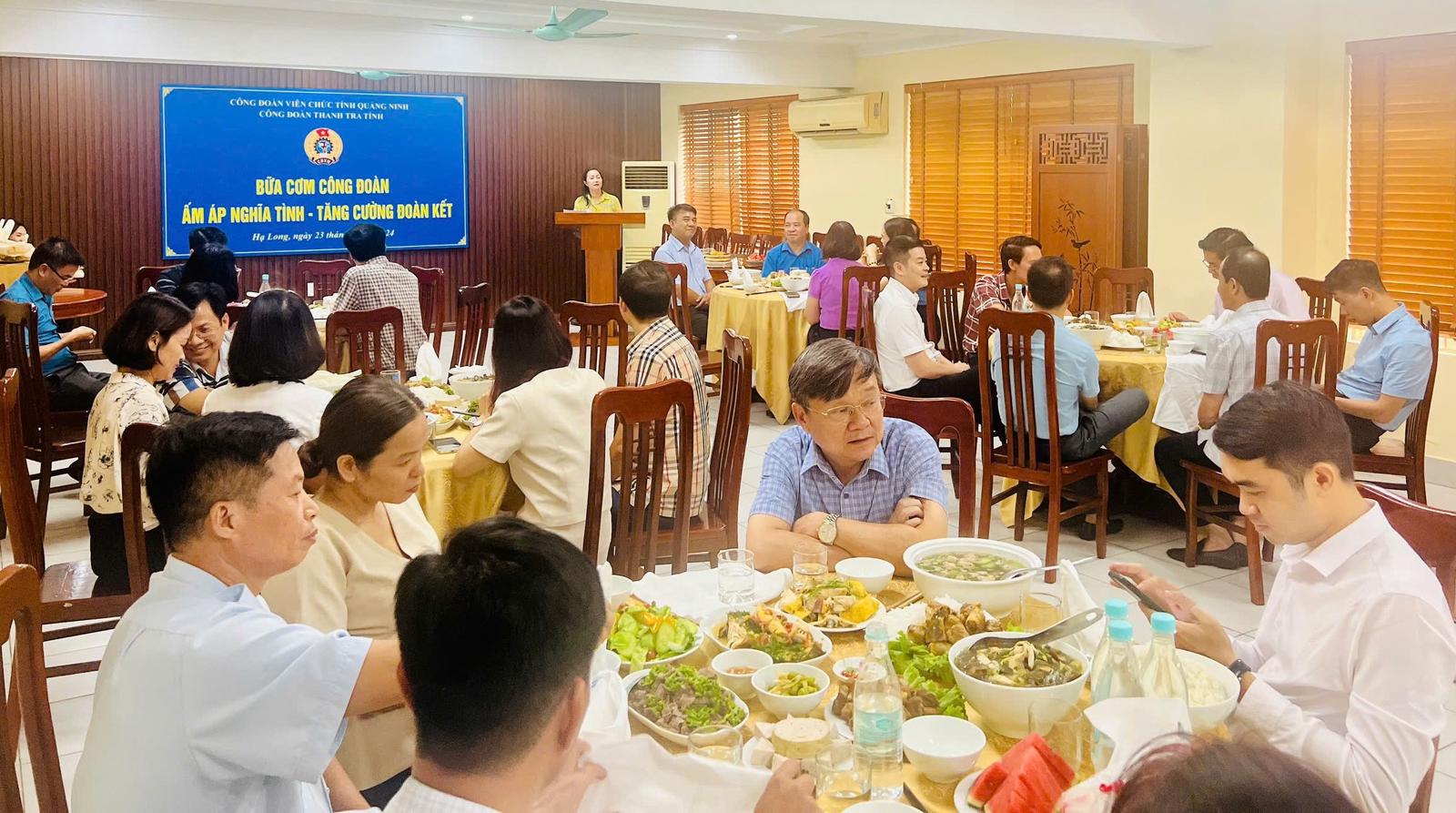 Tham dự “Bữa cơm Công đoàn” có Phó Chủ tịch Liên đoàn Lao động tỉnh Quảng Ninh Hoàng Thị Hồng Phấn; Chủ tịch Công đoàn viên chức tỉnh Phạm Hoài Ân; Phó Chủ tịch Công đoàn viên chức tỉnh Nguyễn Thanh Hải; Chánh Thanh tra tỉnh Nguyễn Thị Huệ; các Phó Chánh Thanh tra tỉnh và toàn thể đoàn viên công đoàn Thanh tra tỉnh.