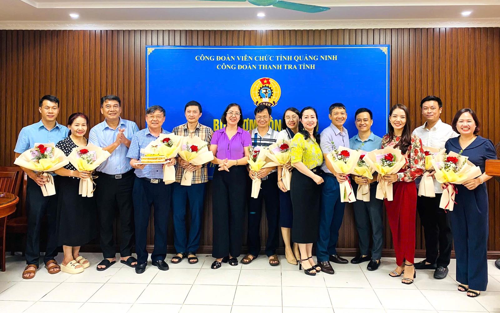 Lãnh đạo Thanh tra tỉnh Quảng Ninh tặng hoa chúc mừng sinh nhật cho 14 cán bộ công chức, người lao động nhân dịp sinh nhật quý 3. Đây là hoạt động ý nghĩa, chăm lo đời sống tinh thần của cán bộ được Thanh tra tỉnh Quảng Ninh duy trì thường xuyên. Ảnh: PV