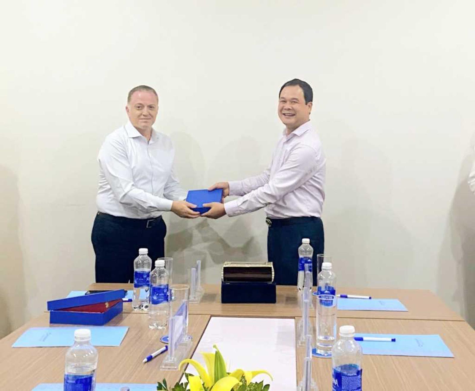 Chánh Thanh tra tỉnh Quảng Ninh Điệp Văn Chiến (bên phải), tặng quà lưu niệm cho trưởng đoàn và các thành viên đoàn. Ảnh: TTTT