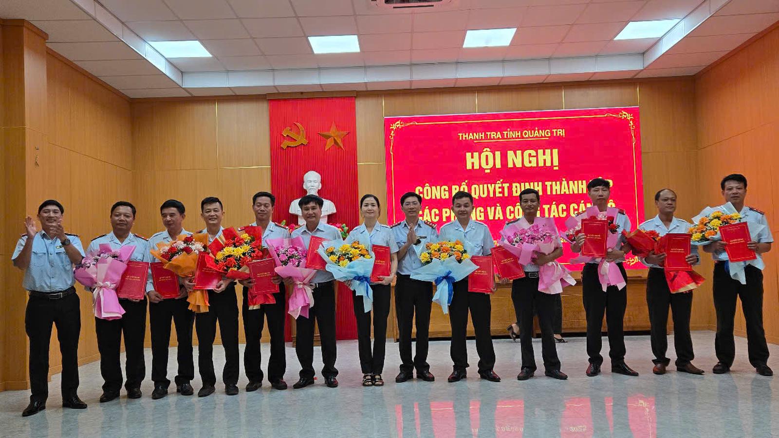 Hội nghị cũng đã công bố cơ cấu tổ chức Thanh tra tỉnh Quảng Trị gồm có 10 phòng (gồm Văn phòng, 2 phòng địa bàn và 7 phòng nghiệp vụ theo lĩnh vực). 10 phòng mới thành lập được bố trí cán bộ cấp trưởng phòng theo chủ trương bình đẳng, 5 trưởng phòng là cán bộ của Thanh tra Quảng Bình và 5 trưởng phòng thuộc Thanh tra Quảng Trị (cũ).