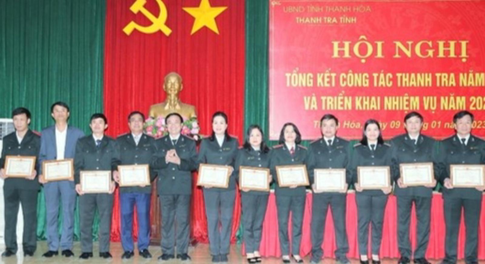 Nhân dịp tổng kết công tác thanh tra năm 2022, triển khai nhiệm vụ năm 2023, Thanh tra tỉnh Thanh Hóa đã tặng giấy khen cho 11 tập thể và 35 cá nhân có thành tích xuất sắc trong thực hiện nhiệm vụ công tác thanh tra năm 2022.