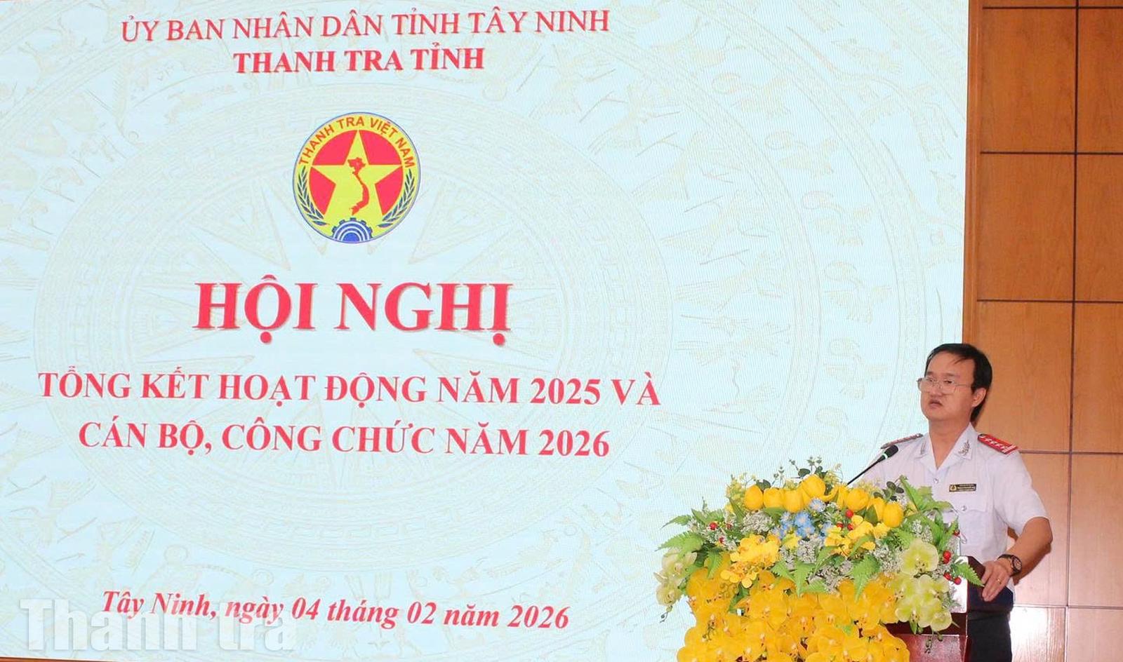 (Thanh tra) - Sáng 4/2, Thanh tra tỉnh Tây Ninh tổ chức hội nghị tổng kết công tác thanh tra năm 2025 và triển khai phương hướng, nhiệm vụ năm 2026. Hội nghị đánh giá toàn diện kết quả hoạt động của ngành, trong đó nổi bật là việc phát hiện sai phạm về kinh tế hơn 121 tỷ đồng, góp phần nâng cao hiệu lực, hiệu quả quản lý Nhà nước và phòng, chống tham nhũng, tiêu cực trên địa bàn tỉnh.