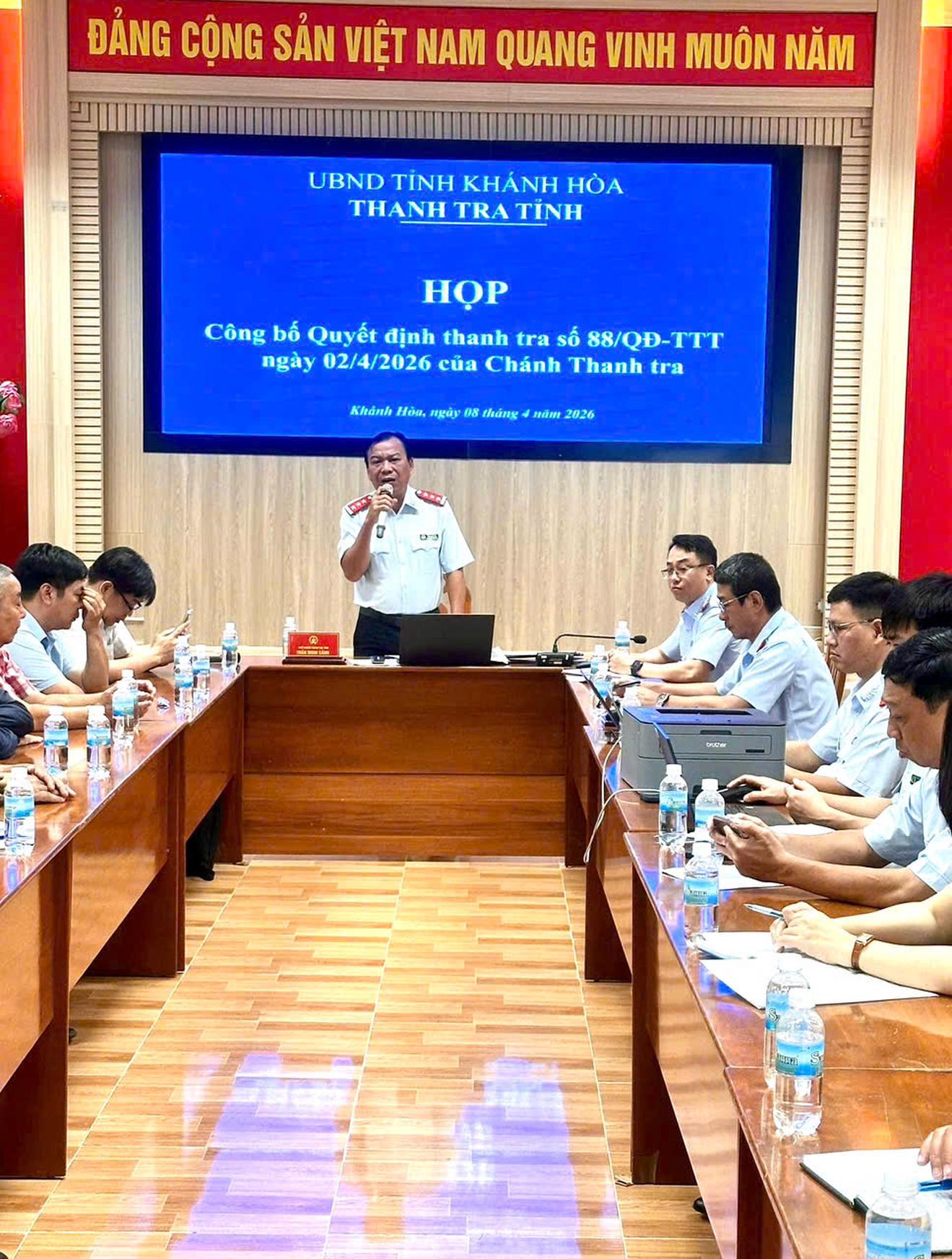 Phó Chánh Thanh tra tỉnh Khánh Hoà Trần Minh Cảnh chủ trì công bố quyết định thanh tra 9 doanh nghiệp vận tải. Ảnh TTT