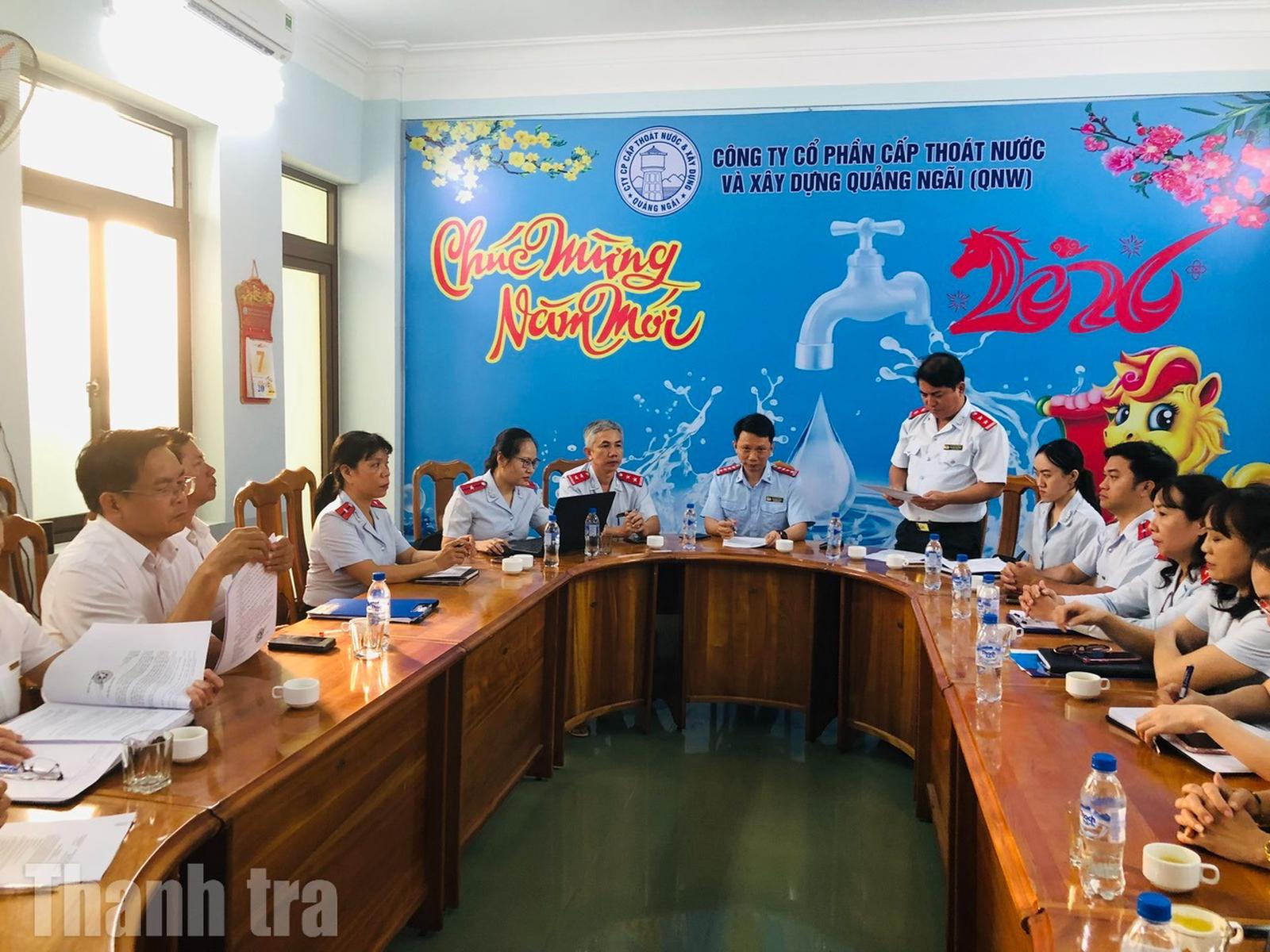Đoàn thanh tra tỉnh Quảng Ngãi công bố quyết định thanh tra ngày 7/4 tại Công ty Cổ phần Cấp thoát nước và Xây dựng Quảng Ngãi (QNW). Ảnh: MN