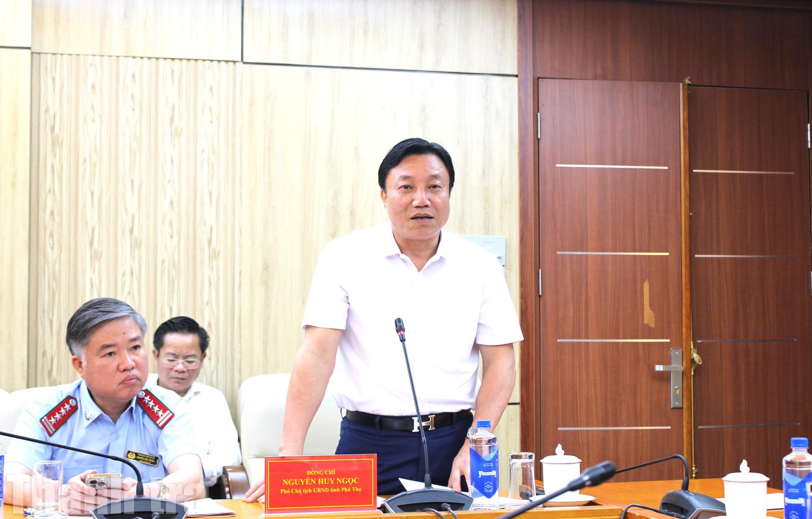 Phó Chủ tịch UBND tỉnh Phú Thọ Nguyễn Huy Ngọc phát biểu tại buổi làm việc. Ảnh: LP
