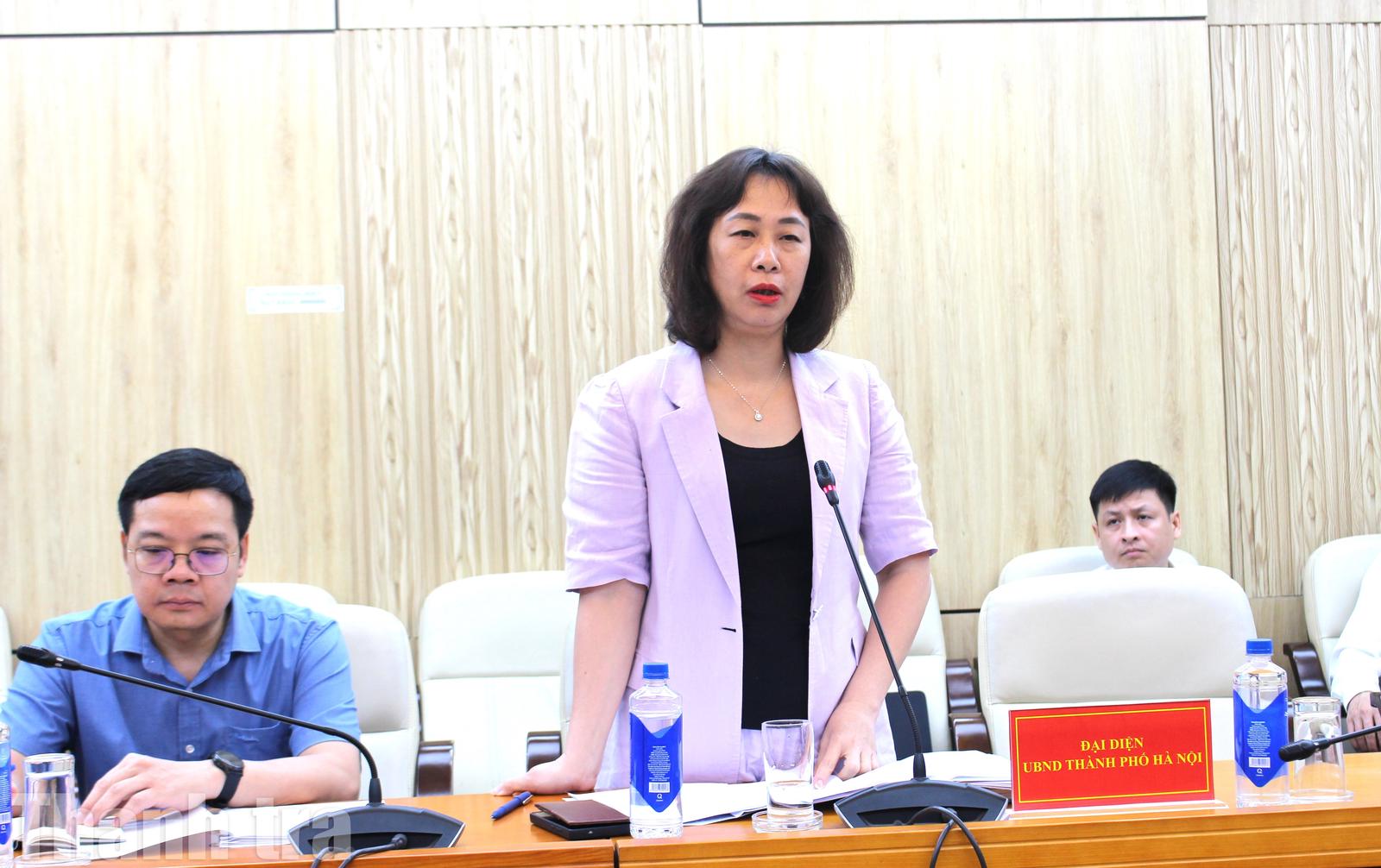 Phó Chánh Thanh tra TP Hà Nội Nguyễn Thúy Hằng phát biểu tại buổi làm việc. Ảnh: LP
