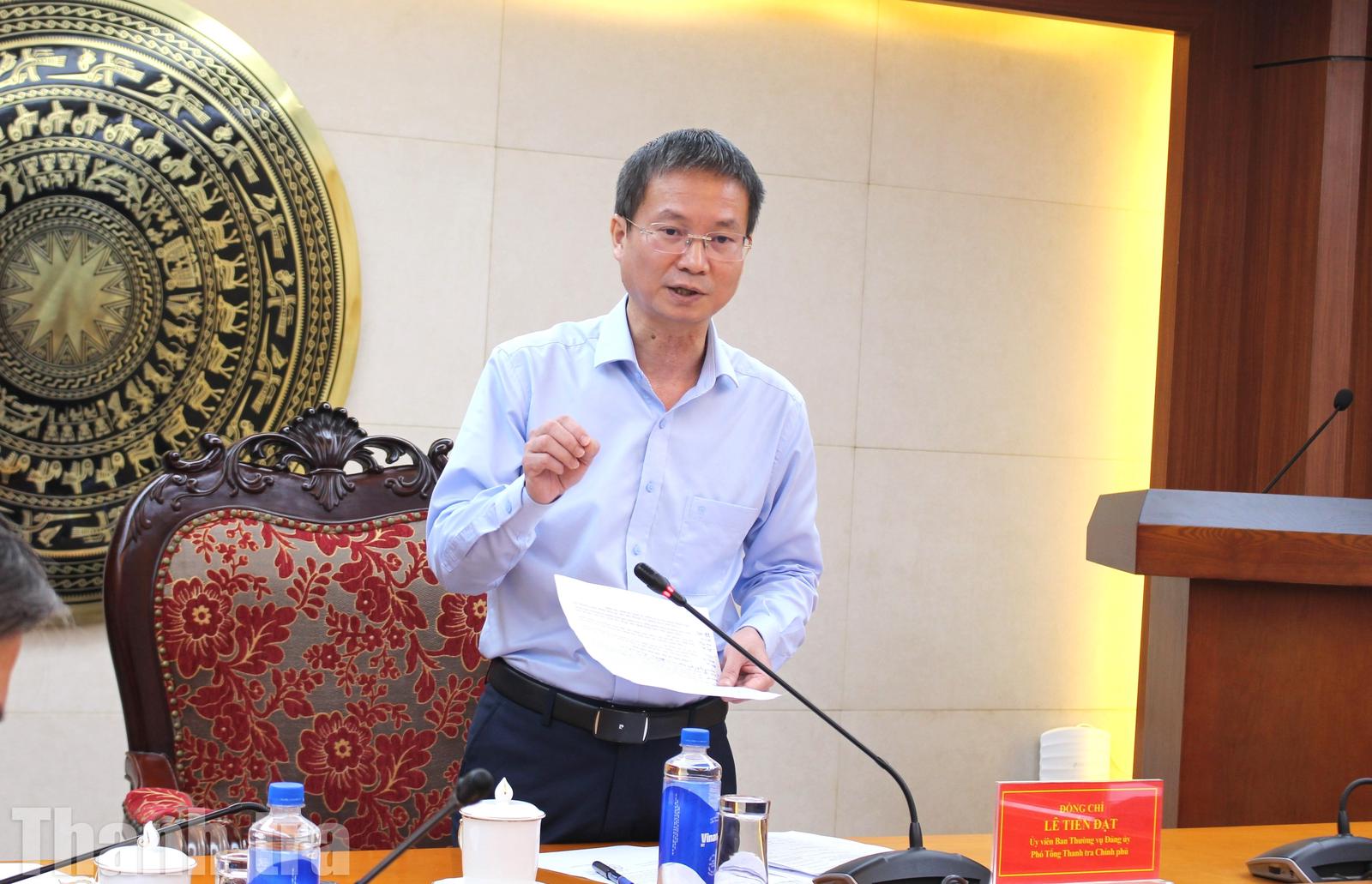 Phó Tổng Thanh tra Chính phủ Lê Tiến Đạt phát biểu tại buổi làm việc. Ảnh: LP