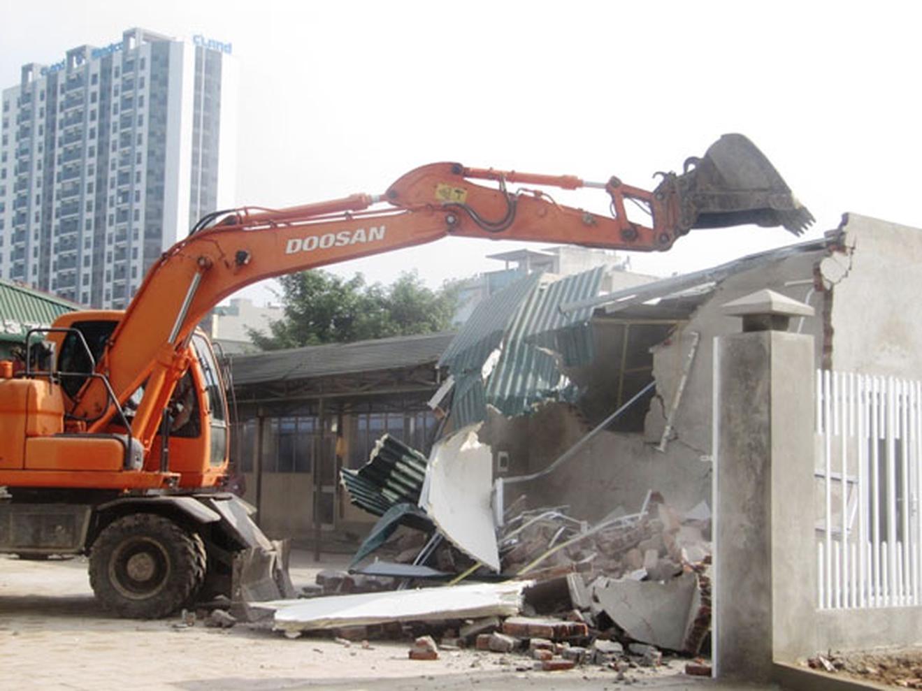 Lực lượng liên ngành TP Hà Nội tổ chức cưỡng chế công trình vi phạm trật tự xây dựng đô thị. Ảnh: Trần Quý