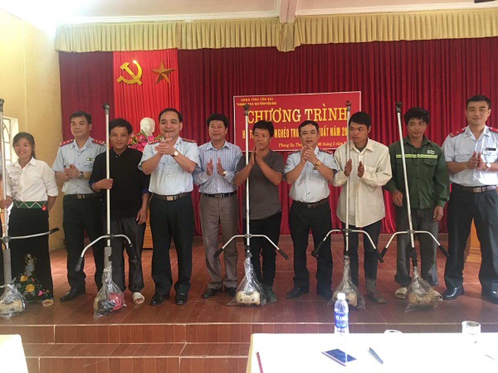 (Thanh tra) - Ngày 6/5, Thanh tra tỉnh Yên Bái tổ chức chương trình hỗ trợ người nghèo phát triển chăn nuôi sản xuất, trong đó, trao máy nông cụ, giống vật nuôi… cho 50 hộ nghèo của 2 xã Phong Dụ Thượng, Phong Dụ Hạ, huyện Văn Yên.