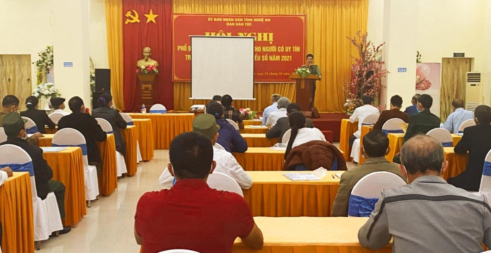 Ban Dân tộc tỉnh Nghệ An tổ chức tập huấn cho đội ngũ người uy tín trong đồng bào DTTS. Ảnh: Xuân Thống