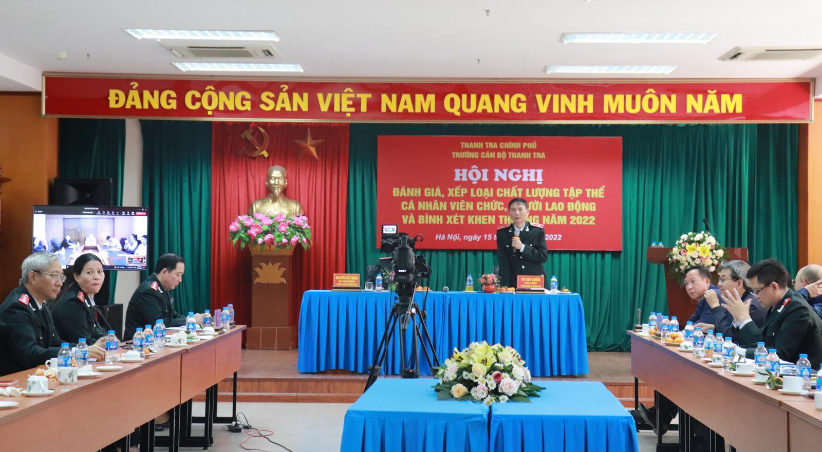 Báo cáo tại hội nghị, ông Nguyễn Viết Thạch, Phó Hiệu trưởng Trường Cán bộ Thanh tra cho biết, năm 2022, được sự chỉ đạo sát sao của lãnh đạo Thanh tra Chính phủ (TTCP), sự hỗ trợ, tạo điều kiện của các cục, vụ, đơn vị thuộc TTCP, Trường Cán bộ Thanh tra đã xây dựng được sự thống nhất trong lãnh đạo, chỉ đạo, điều hành từ Đảng ủy, Ban Giám hiệu đến các tổ chức đoàn thể. Thường xuyên rà soát, sửa đổi, bổ sung các quy chế hoạt động, quy trình làm việc, sự phối hợp tốt của các phòng, khoa, đơn vị và các bộ phận đã tạo lên một tập thể đoàn kết, hướng đến mục tiêu khắc phục khó khăn, hoàn thành tốt mọi nhiệm vụ được giao.