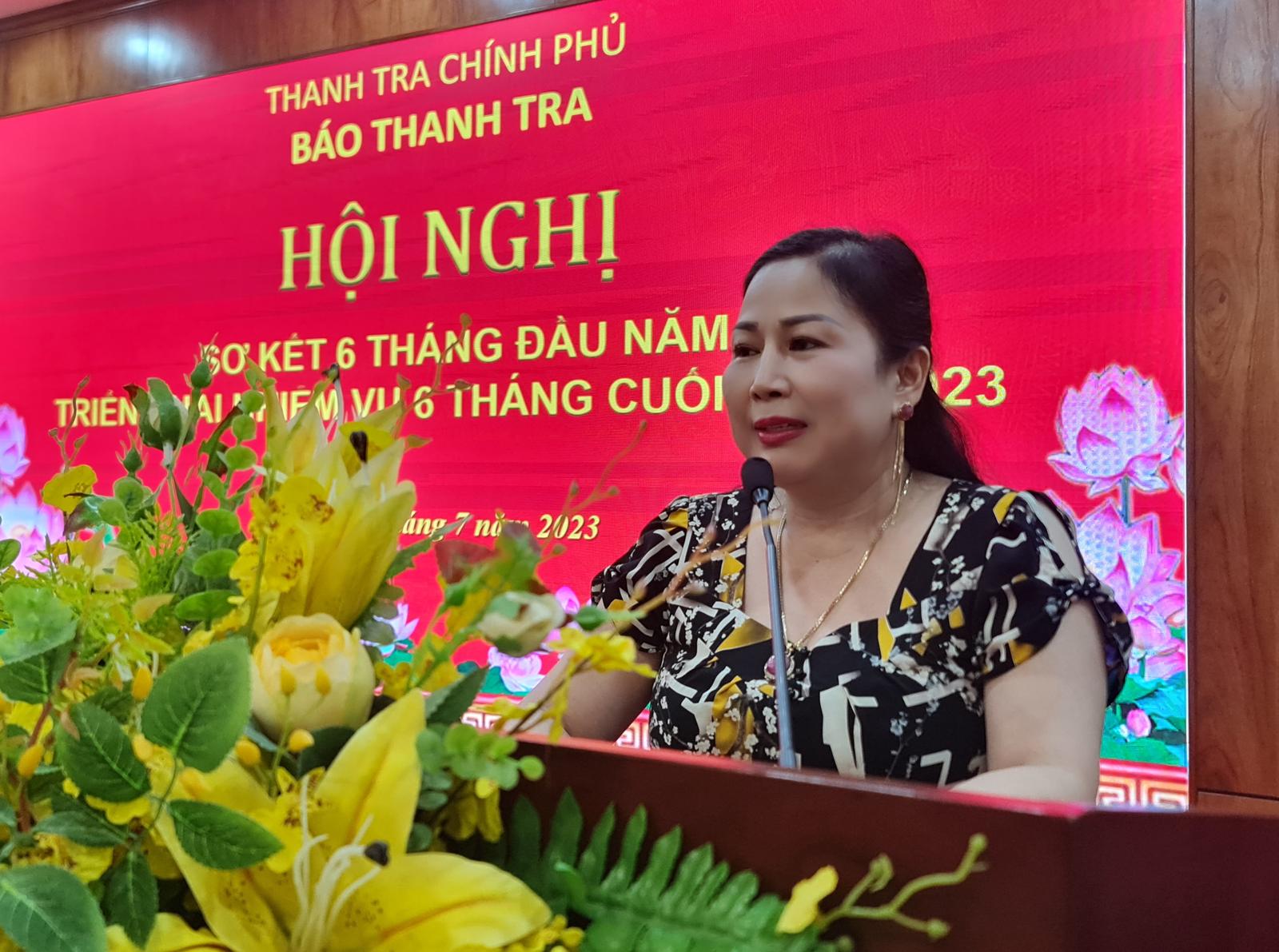 Phát biểu chỉ đạo tại hội nghị, Phó Tổng Biên tập Phụ trách Báo Thanh tra Nguyễn Thị Hoa đánh giá cao kết quả công tác 6 tháng đầu năm 2023. Đồng thời, yêu cầu tập thể cán bộ, viên chức người lao động tiếp tục phát huy kết quả đạt được, nỗ lực khắc phục khó khăn, tồn tại, hạn chế, đoàn kết gắn bó cùng đưa cơ quan ngày càng phát triển.