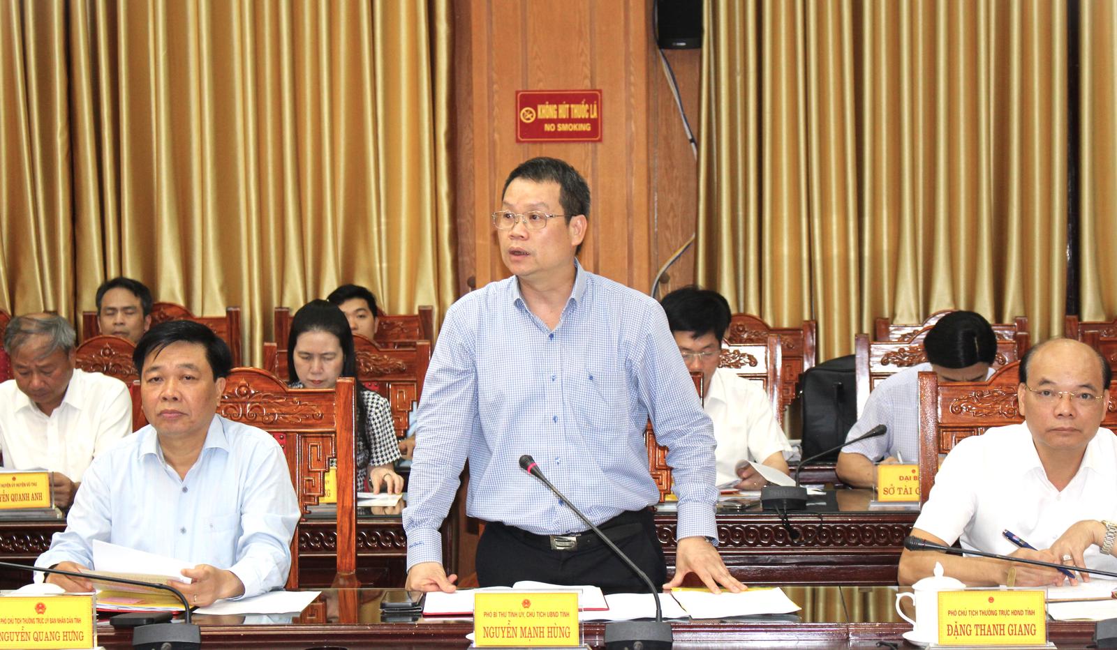 Chủ tịch UBND tỉnh Thái Bình Nguyễn Mạnh Hùng phát biểu tại buổi làm việc. Ảnh: Trọng Tài