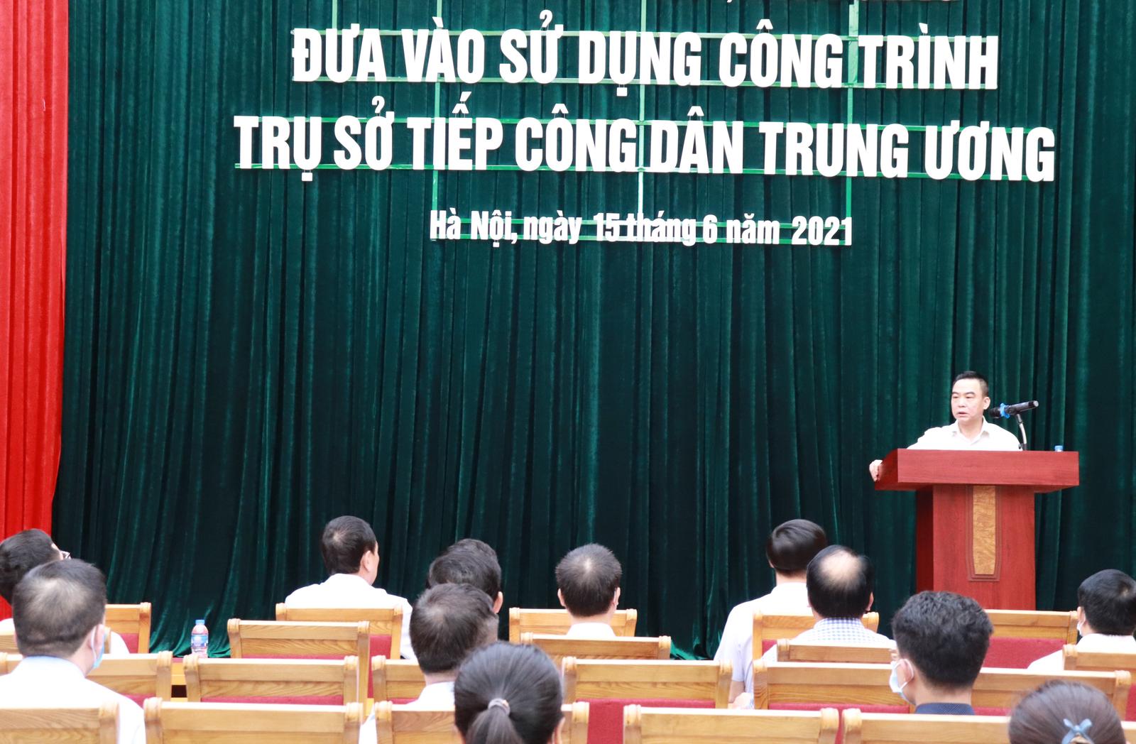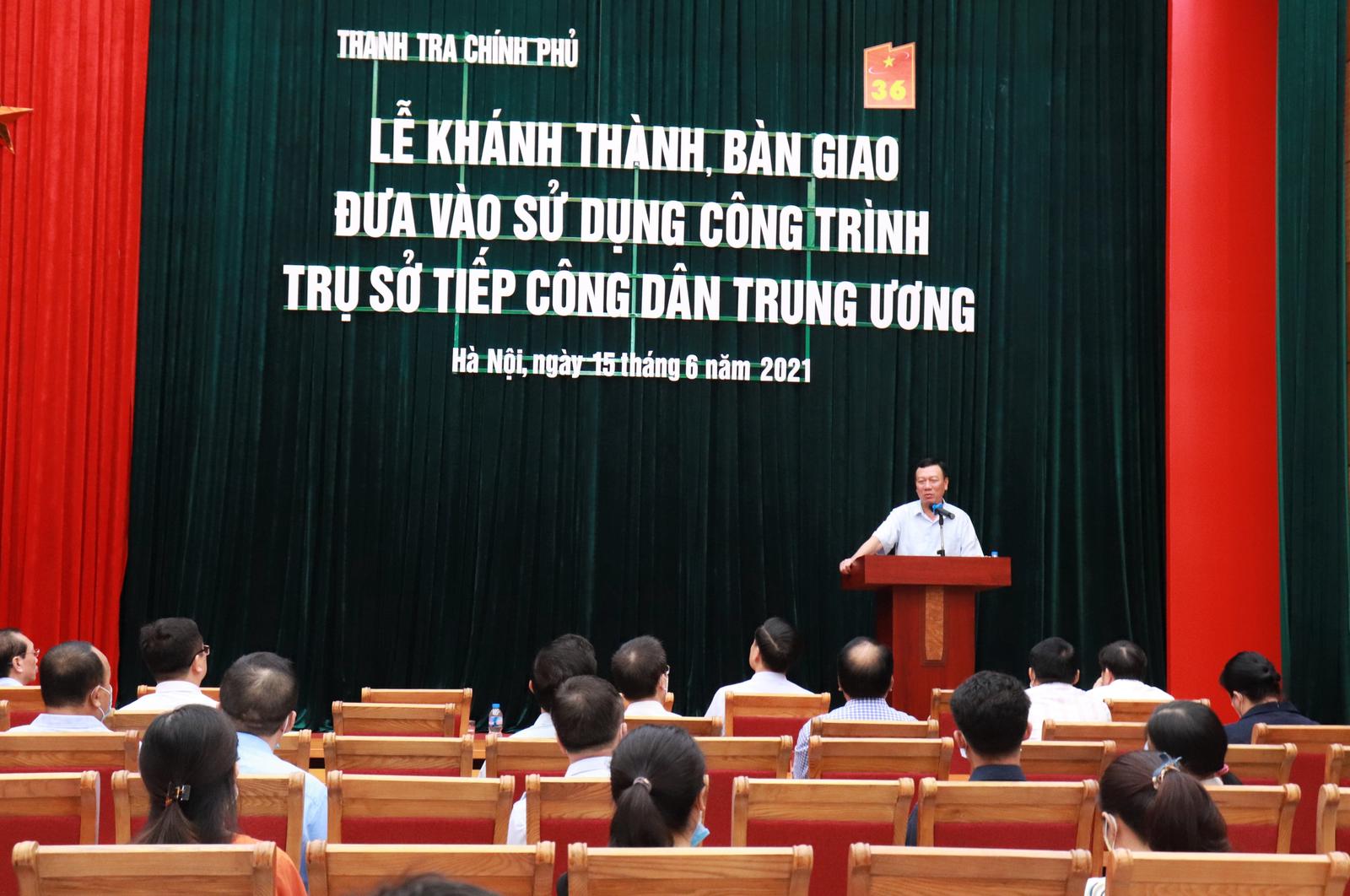 Phát biểu tại lễ khánh thành, thay mặt lãnh đạo Thanh tra Chính phủ, Tổng Thanh tra Đoàn Hồng Phong nhấn mạnh: Được sự quan tâm của Chính phủ, Thanh tra Chính phủ đã thực hiện đầu tư xây dựng Trụ sở Tiếp công dân Trung ương tại Hà Nội, địa chỉ số 1 Ngô Thì Nhậm, quận Hà Đông từ năm 2018. Đến nay, công trình xây dựng đã hoàn thành.