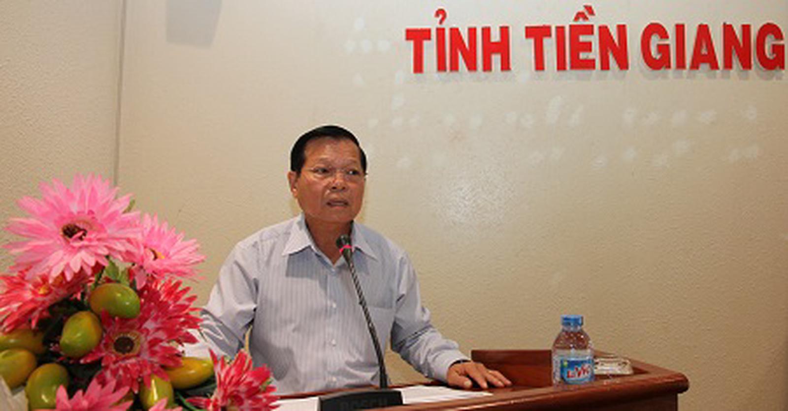Chủ tịch UBND tỉnh Tiền Giang Nguyễn Văn Khang báo cáo về kết quả giải quyết KN của công dân. Ảnh: Ngọc Giang