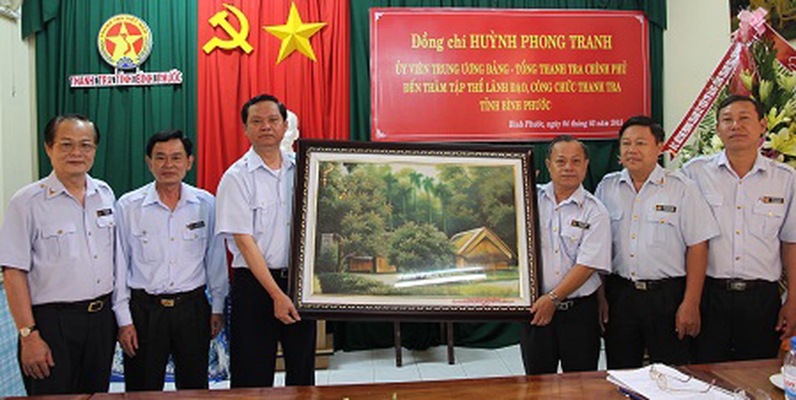 Nhân chuyến công tác, Tổng Thanh tra Chính phủ Huỳnh Phong Tranh, Phó Tổng Thanh tra Chính phủ Nguyễn Chiến Bình, lãnh đạo Cục III, Ban Tiếp dân Trung ương, Văn phòng Thanh tra Chính phủ đã đến thăm và tặng quà lưu niệm cho cán bộ, công chức Thanh tra tỉnh Bình Phước và Tiền Giang.
