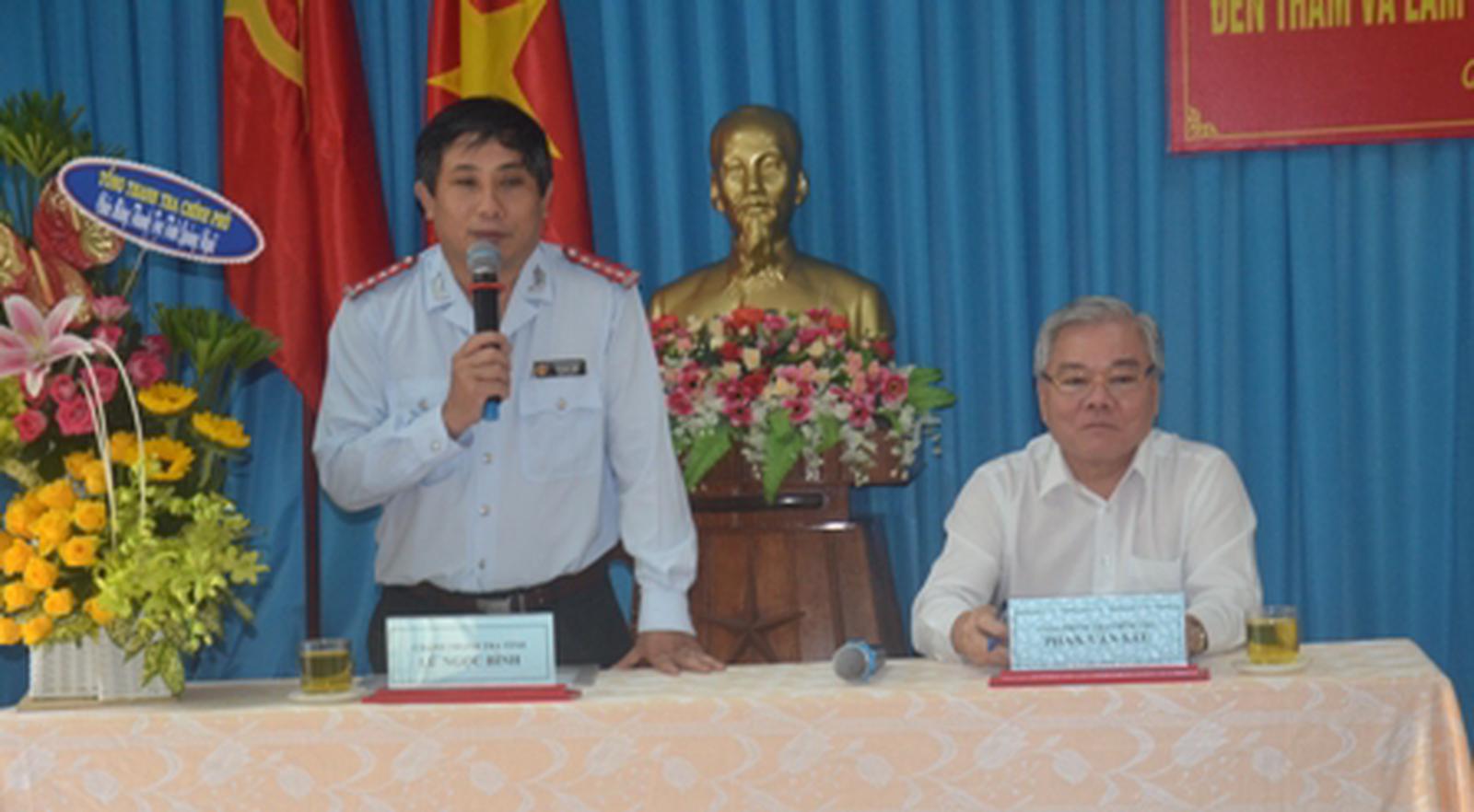 Báo cáo với Tổng Thanh tra, Chánh Thanh tra tỉnh Lữ Ngọc Bình cho biết, đến nay Thanh tra tỉnh đã hoàn thành xuất sắc kế hoạch cả năm đã được phê duyệt, hiện chỉ còn 1 cuộc thanh tra chuẩn bị kết thúc trong vài ngày tới. Trong năm, Thanh tra tỉnh còn tiến hành 5 cuộc thanh tra đột xuất do lãnh đạo tỉnh giao. Công tác thu hồi tài sản sai phạm qua thanh tra đạt tỷ lệ 90%, là năm đạt cao nhất từ trước đến nay.