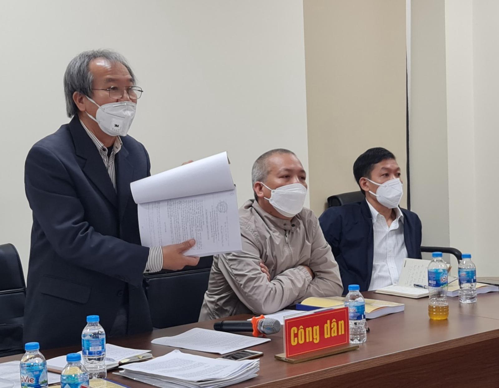 Đại diện công dân tổ 18E phường Vĩnh Tuy, quận Hai Bà Trưng trình bày nội dung khiếu nại, tố cáo. Ảnh: TH