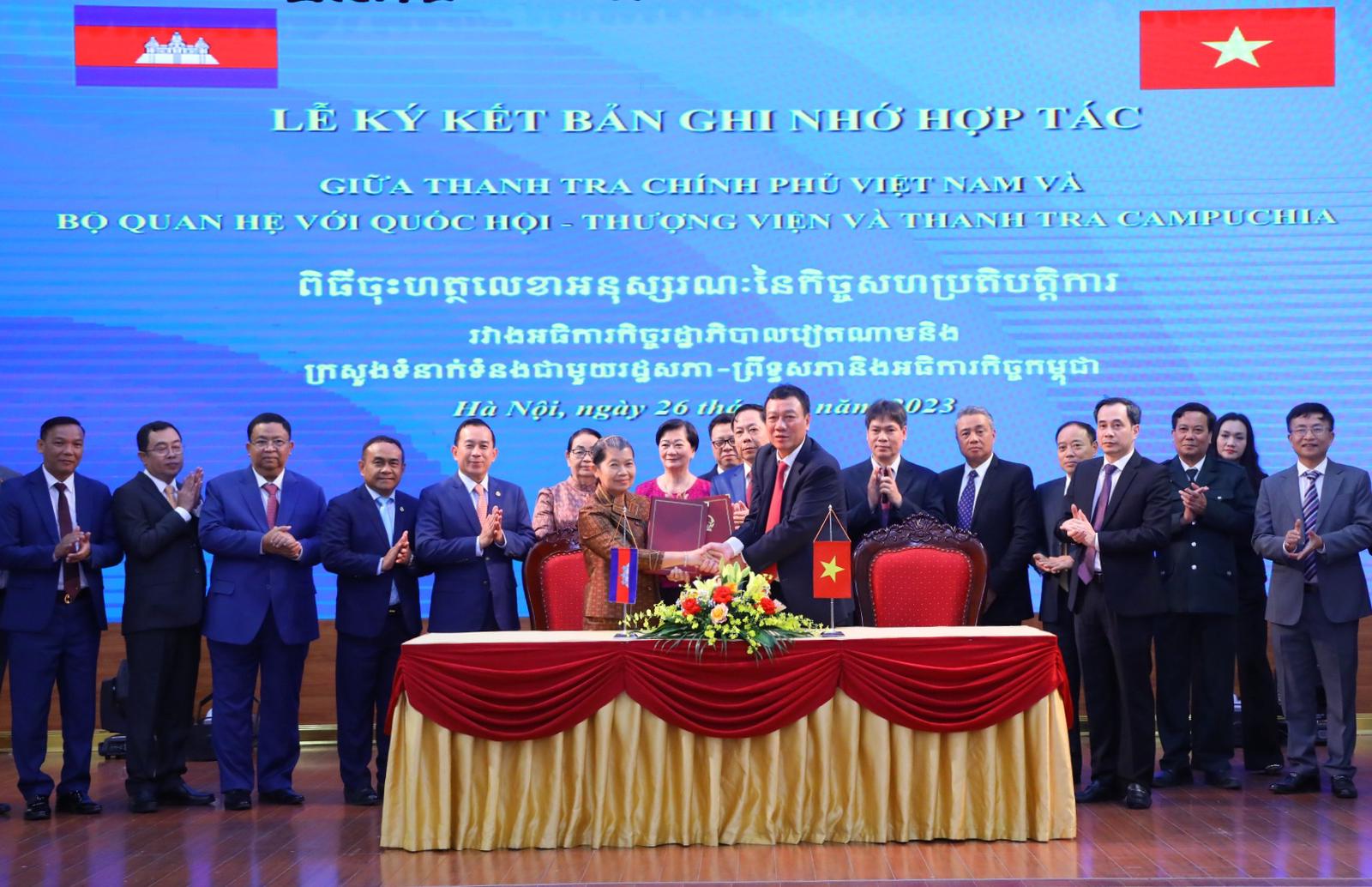 “Tôi vui mừng vì hai bên đã thống nhất cao việc ký bản ghi nhớ hợp tác sửa đổi nhân chuyến thăm làm việc tại Việt Nam của bà Samdech Men Sam An lần này. Đây sẽ là một cột mốc quan trọng đưa quan hệ hợp tác giữa hai cơ quan đi vào chiều sâu, ngày càng thiết thực, hiệu quả, góp phần vun đắp cho mối quan hệ láng giềng tốt đẹp, hữu nghị truyền thống, hợp tác toàn diện, bền vững lâu dài giữa hai nước Việt Nam - Campuchia” - Tổng Thanh tra nhấn mạnh.