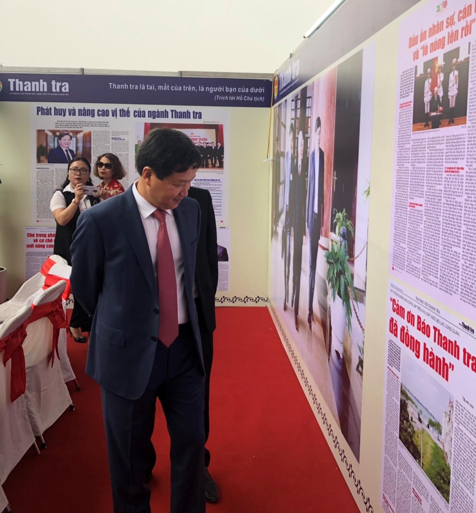 Thăm gian trưng bày của Báo Thanh tra tại Hội Báo có Bí thư Trung ương Đảng Phan Đình Trạc, Trưởng Ban Nội chính Trung ương; Ủy viên Trung ương Đảng, Phó Chủ tịch Quốc hội Phùng Quốc Hiển; các đồng chí Ủy viên Trung ương Đảng: Trần Hồng Hà, Bộ trưởng Bộ Tài nguyên và Môi trường; Nguyễn Đức Lợi, Tổng Giám đốc Thông tấn xã Việt Nam; Nguyễn Thế Kỷ, Tổng Giám đốc Đài Tiếng nói Việt Nam.
