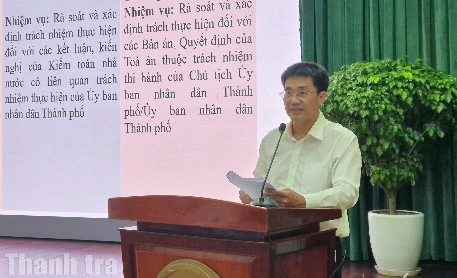 Chánh Thanh tra TP Hồ Chí Minh Phạm Văn Nghì triển khai nội dung của Kế hoạch số 185/KH-UBND. Ảnh: Nhật Huyền