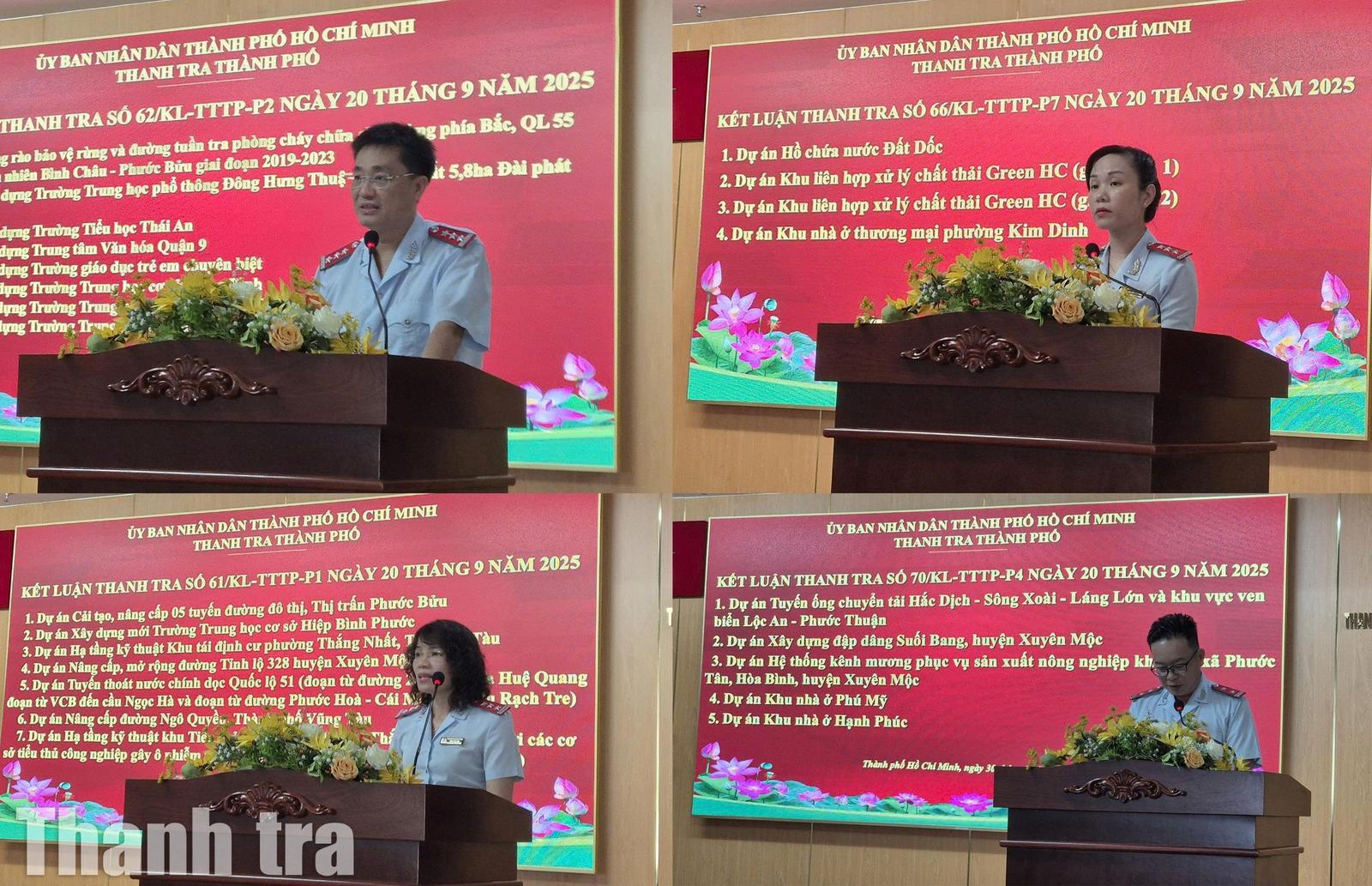 Thanh tra TP Hồ Chí Minh công khai kết luận thanh tra chuyên đề các công trình, dự án có khó khăn, vướng mắc theo Kế hoạch số 1505/KH-TTCP của Thanh tra Chính phủ. Ảnh: Thu Huyền