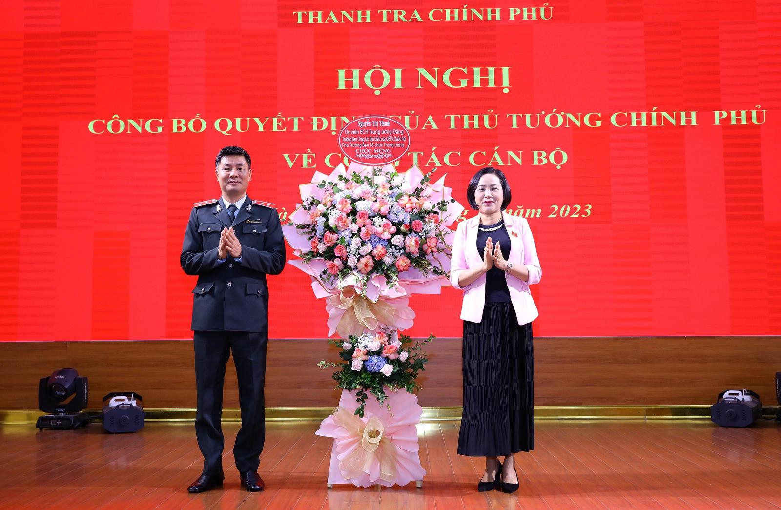Cùng dự có Ủy viên Ban Chấp hành Trung ương Đảng, Trưởng ban Công tác đại biểu của Ủy ban Thường vụ Quốc hội, Phó Trưởng ban Tổ chức Trung ương, bà Nguyễn Thị Thanh; các đồng chí Phó Tổng Thanh tra Chính phủ: Đặng Công Huẩn, Dương Quốc Huy và đại diện lãnh đạo các cục, vụ, đơn vị thuộc Thanh tra Chính phủ...