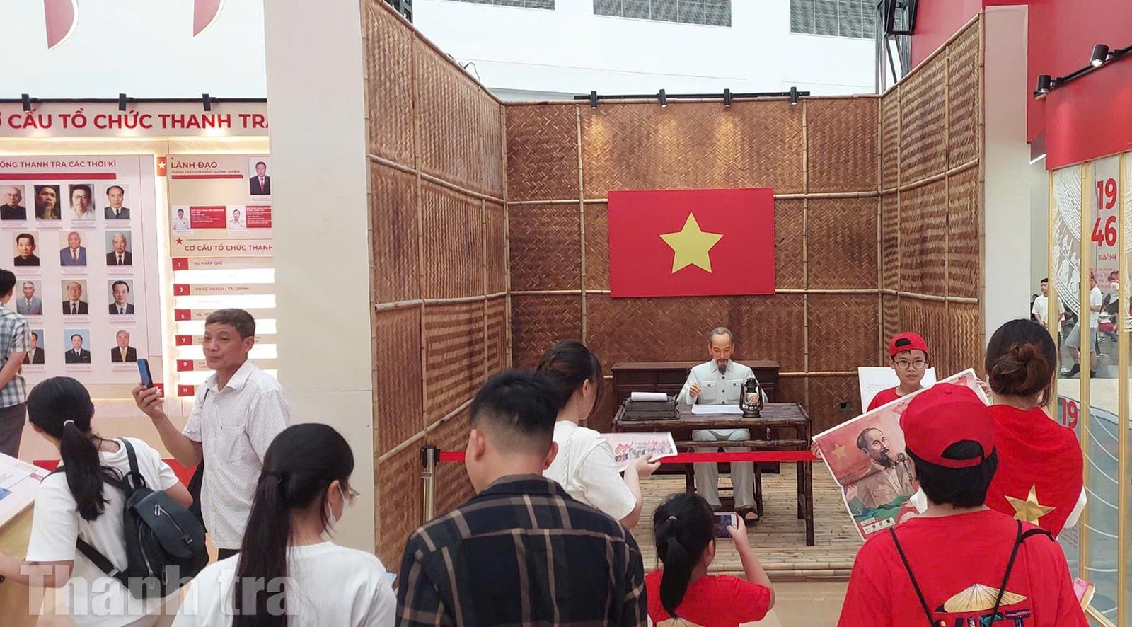 Hình ảnh mô phỏng Chủ tịch Hồ Chí Minh đã ký Sắc lệnh số 64-SL thành lập cơ quan Thanh tra đặc biệt - tiền thân của ngành Thanh tra, luôn nhộn nhip du khách tham quan. Ảnh: Trung Hà