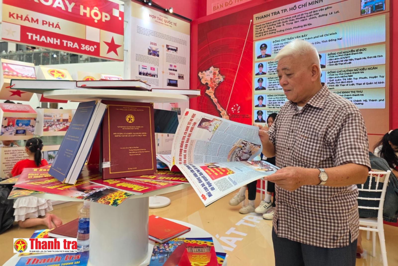 Cách đó không xa, ông Nguyễn Bá Đanh, 82 tuổi, quê Bắc Ninh đang chăm chú đọc từng trang Báo Thanh tra được bày trong gian triển lãm. Ông Đanh là cựu cán bộ hưu trí, nay đã ngoài 80, nhưng đôi mắt vẫn sáng và giọng nói dứt khoát.