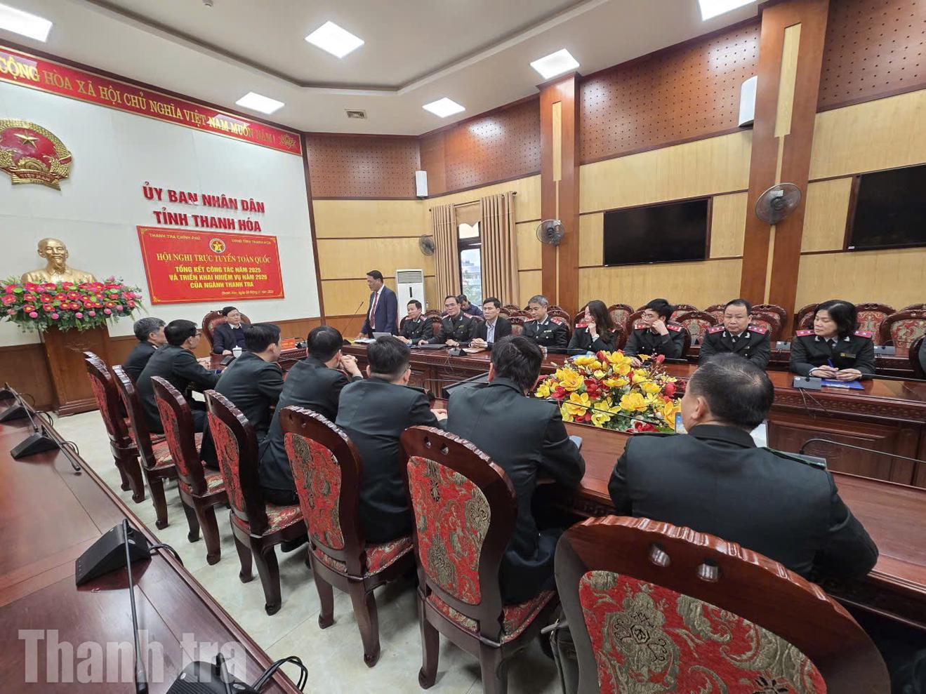 Chiều 8/1, Thanh tra Chính phủ tổ chức Hội nghị tổng kết công tác năm 2025 và triển khai nhiệm vụ năm 2026 của ngành Thanh tra, với sự tham dự và chỉ đạo của đồng chí Nguyễn Hòa Bình, Ủy viên Bộ Chính trị, Phó Thủ tướng Thường trực Chính phủ. Tại điểm cầu tỉnh Thanh Hóa, Phó Chủ tịch Thường trực UBND tỉnh Mai Xuân Liêm cùng lãnh đạo, cán bộ Thanh tra tỉnh tham dự đầy đủ.