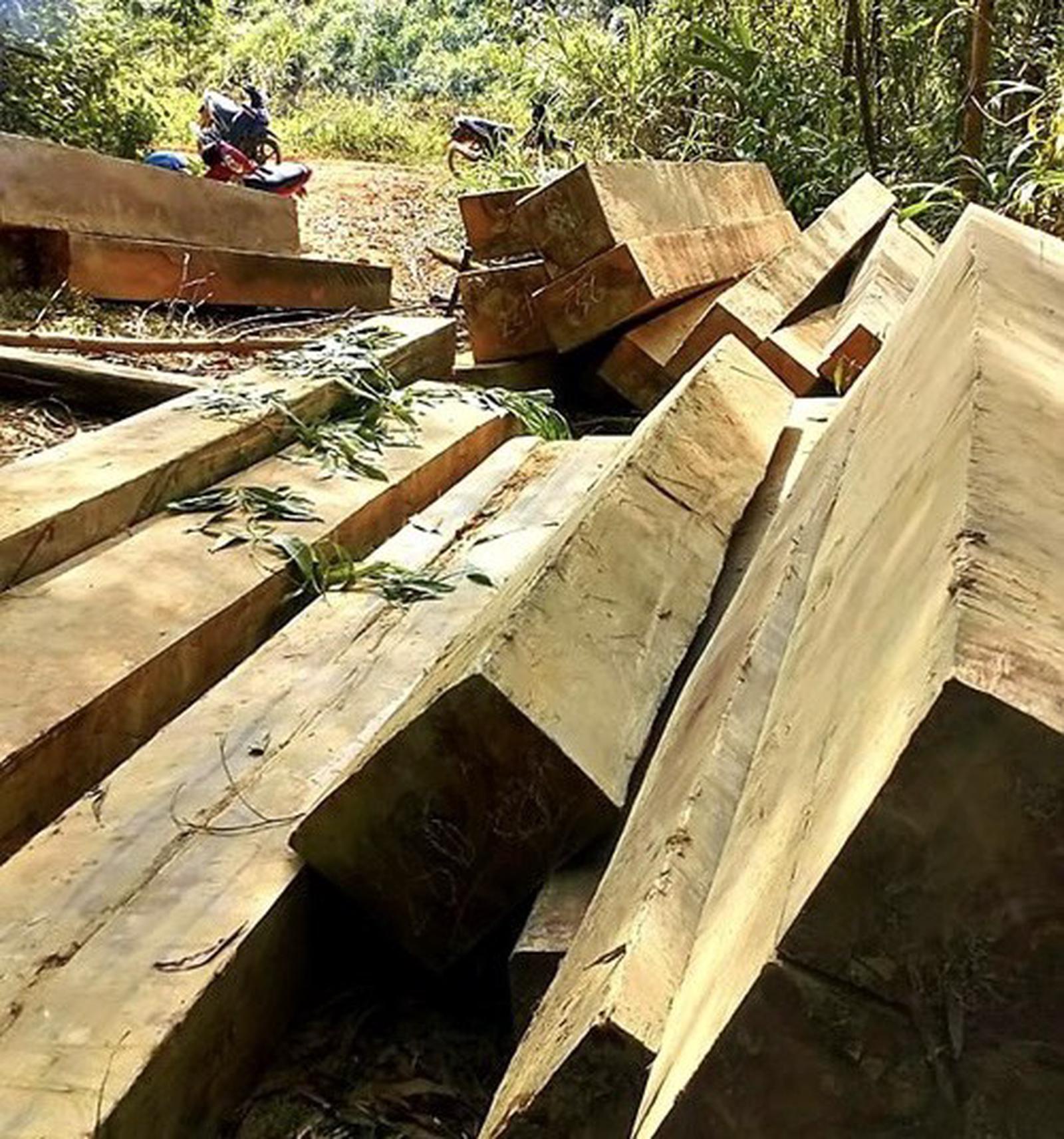 Gỗ tang vật của một vụ phá rừng tại huyện M'đrắk. Ảnh: AM