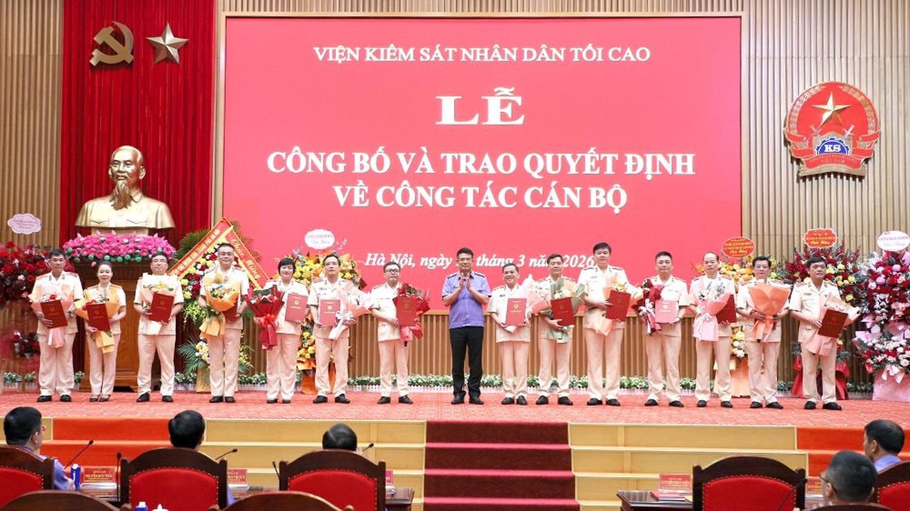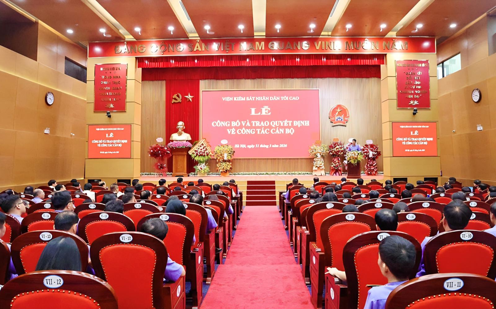 Tại buổi Lễ, Vụ trưởng Vụ Tổ chức cán bộ, VKSND tối cao đã công bố các quyết định ngày 30/3/2026 của Viện trưởng VKSND tối cao về việc điều động, bổ nhiệm chức vụ lãnh đạo, quản lý cấp Vụ và tương đương tại VKSND tối cao.