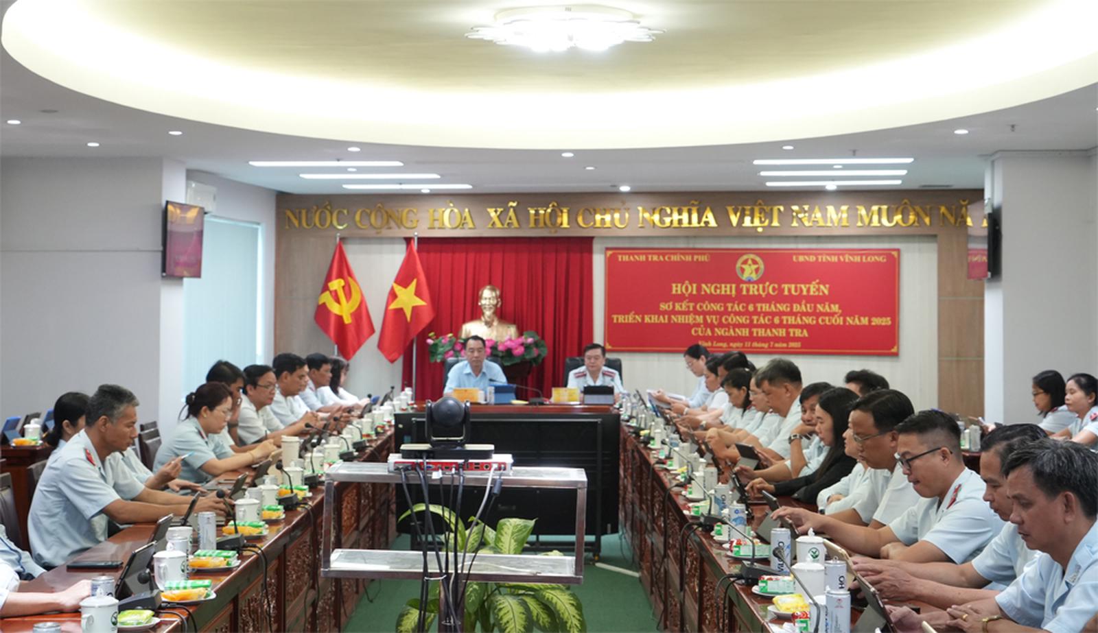 Quang cảnh Hội nghị sơ kết 6 tháng đầu năm 2025 của ngành Thanh tra, tại điểm cầu tỉnh Vĩnh Long
