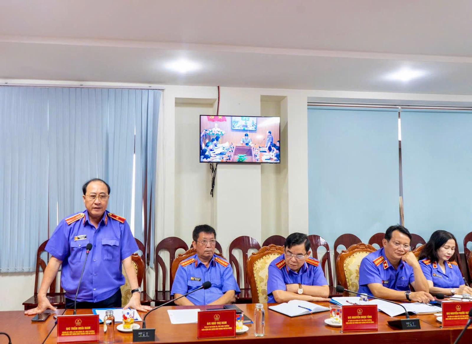 Viện trưởng VKSND thành phố Đà Nẵng Trần Hoài Nam phát biểu tiếp thu ý kiến chỉ đạo. Ảnh: Thanh tra VKSND tối cao