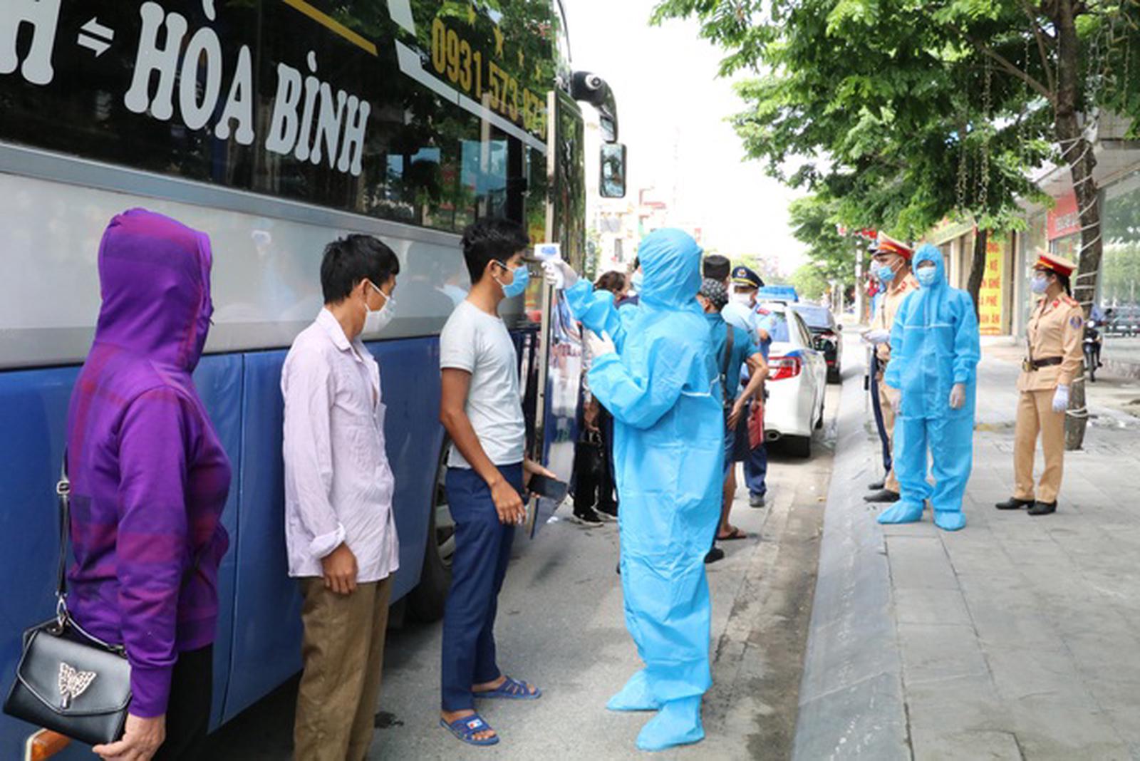 Tất cả hành khách trên xe đều được kiểm tra dịch tễ và đo thân nhiệt. Ảnh: Internet